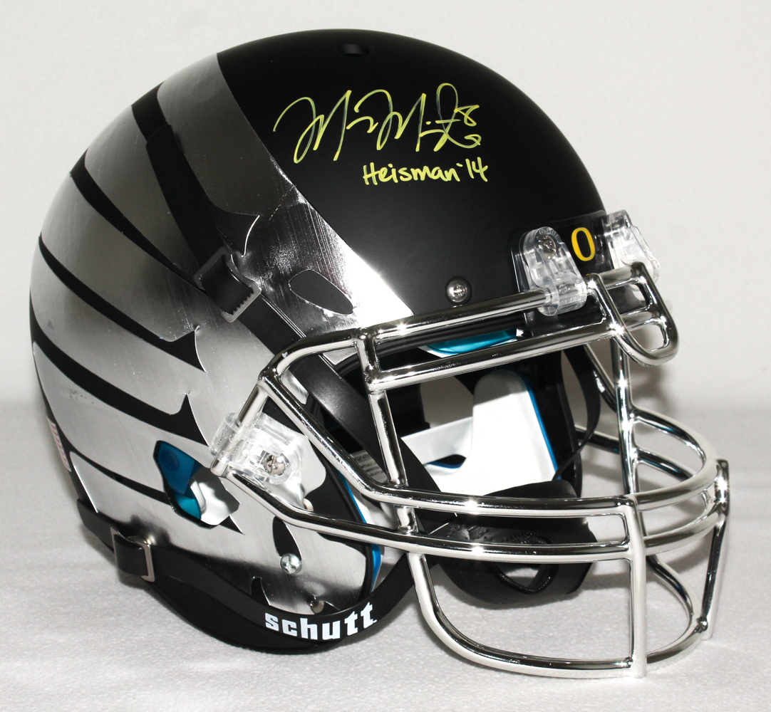 Marcus Mariota Signed LE Oregon Ducks Full-Size Authentic Pro-Line Custom Matte Black & Chrome Wings Helmet Inscribed "Heisman '14" (Steiner COA)