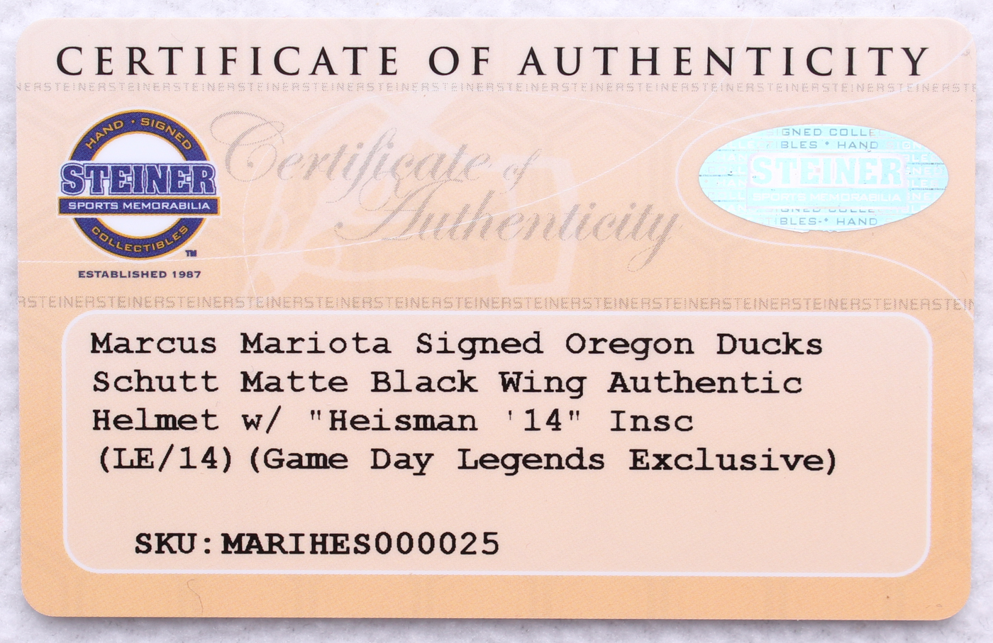 The autograph includes an official Steiner hologram and matching COA for authenticity purposes.
