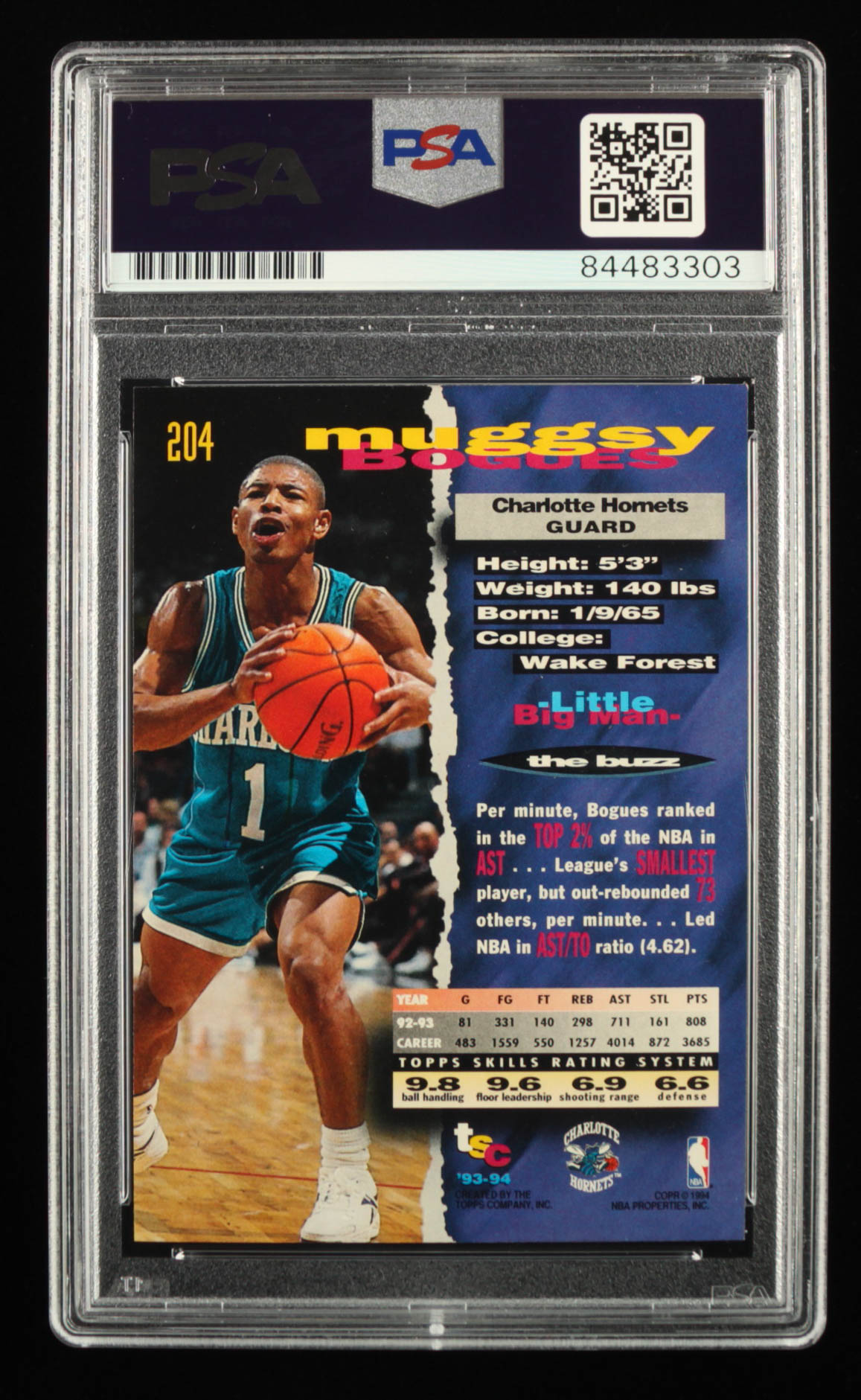 Muggsy Bogues Signed 1993-94 Stadium Club #204 (PSA)