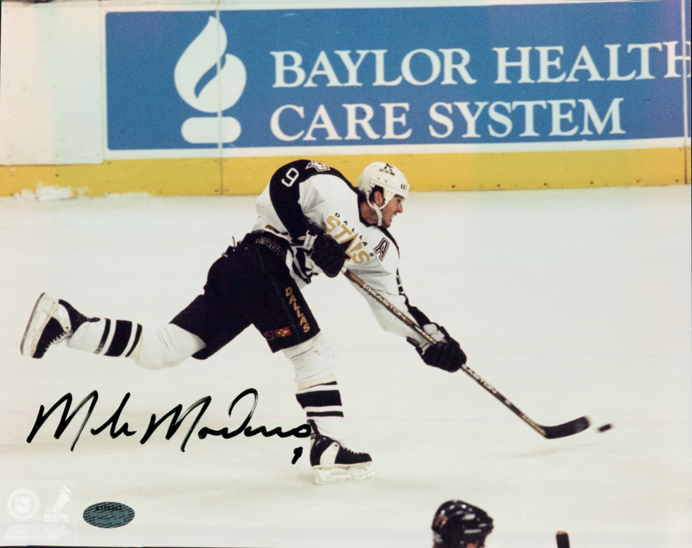 Photo measures 8" x 10" in size and has been hand-signed in black felt-tip pen by Mike Modano (Stars HOF).