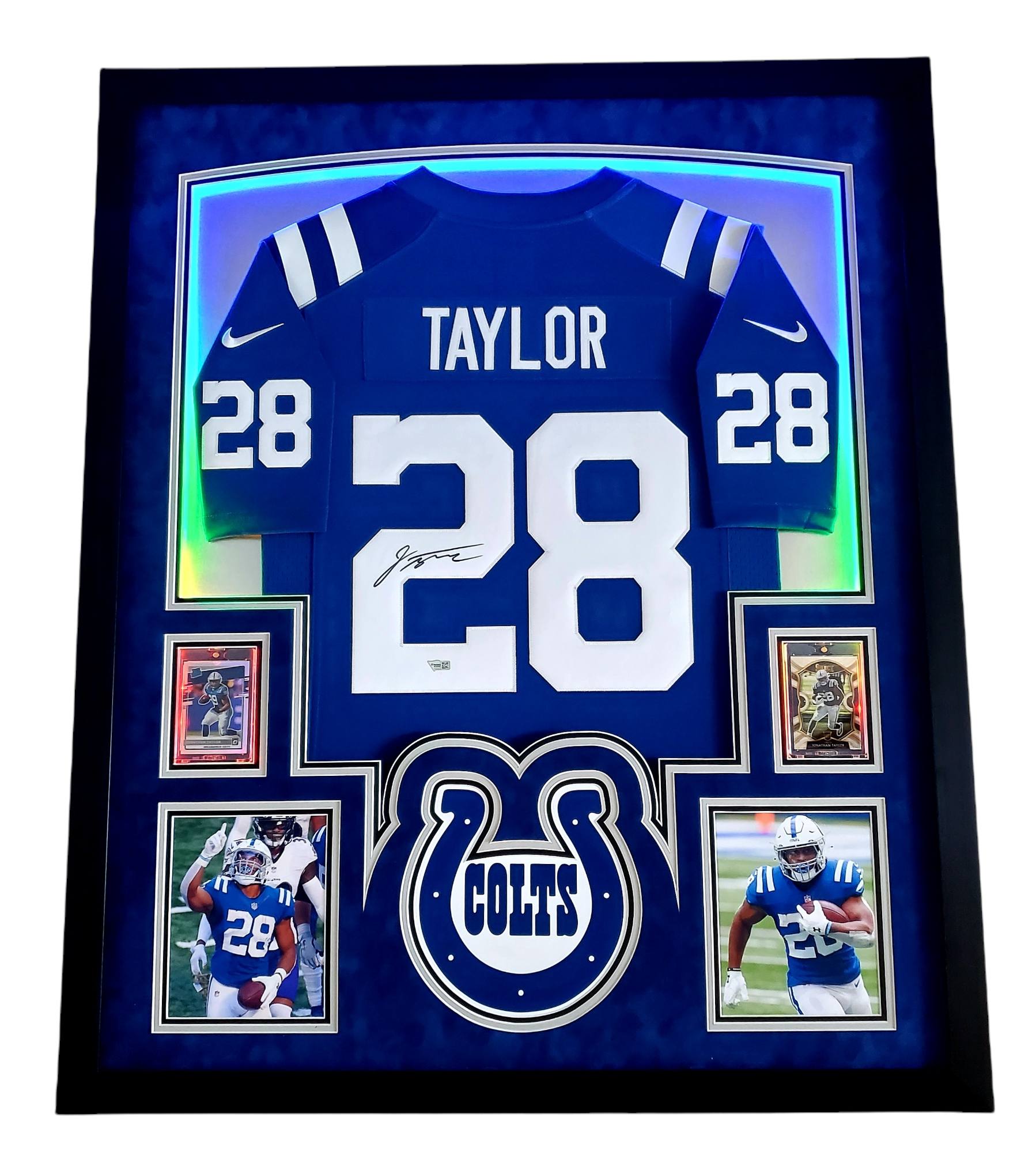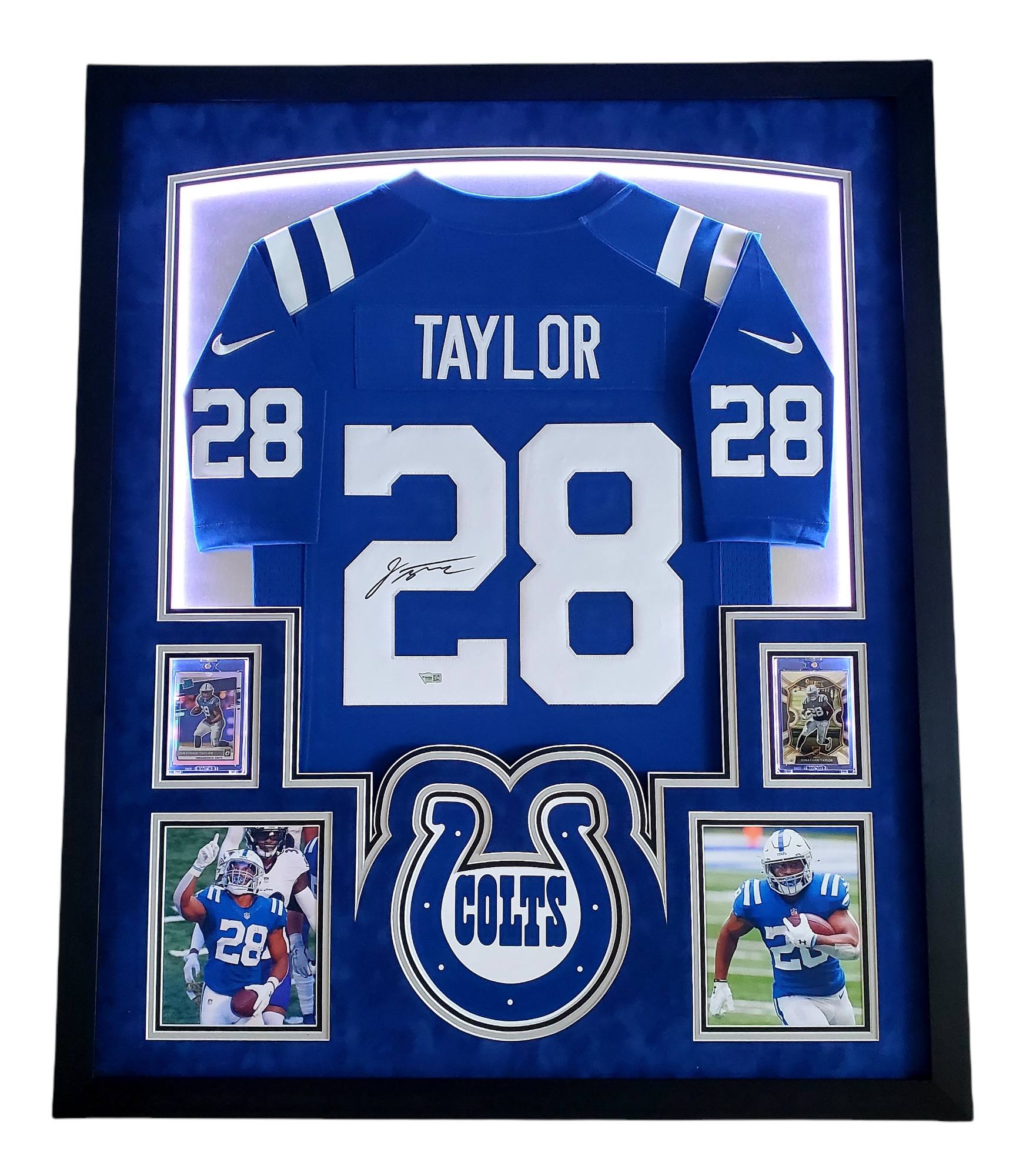 Jonathan Taylor Signed Colts 35x43 Custom Framed Jersey Display with LED Lights (Fanatics)