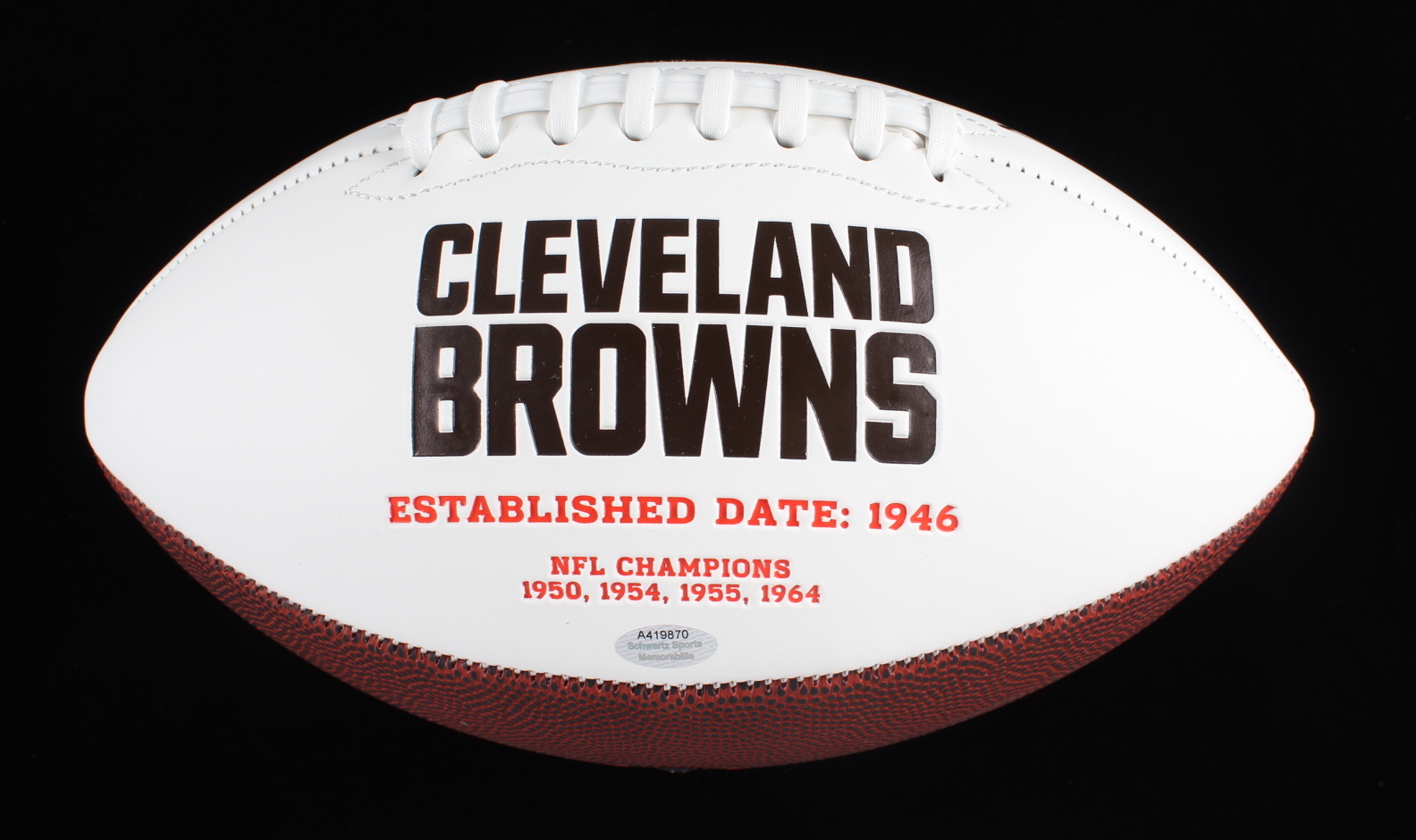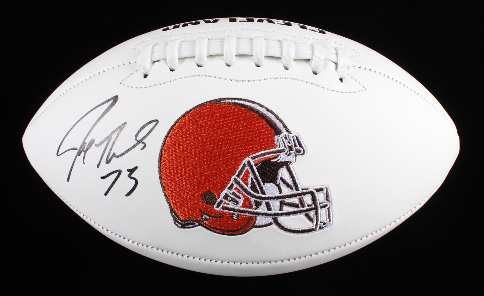 Cleveland Browns logo football. Has been hand-signed by Joe Thomas (HOF).
