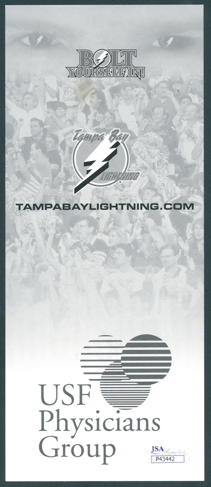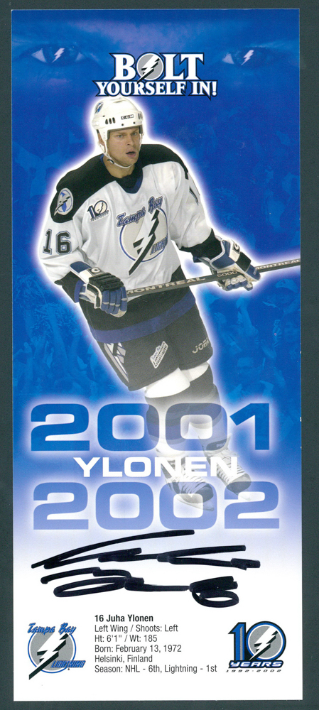 Photo measures 3" x 9" in size and has been hand-signed in black felt tip pen by Juha Ylonen (Tampa Bay Lightning).