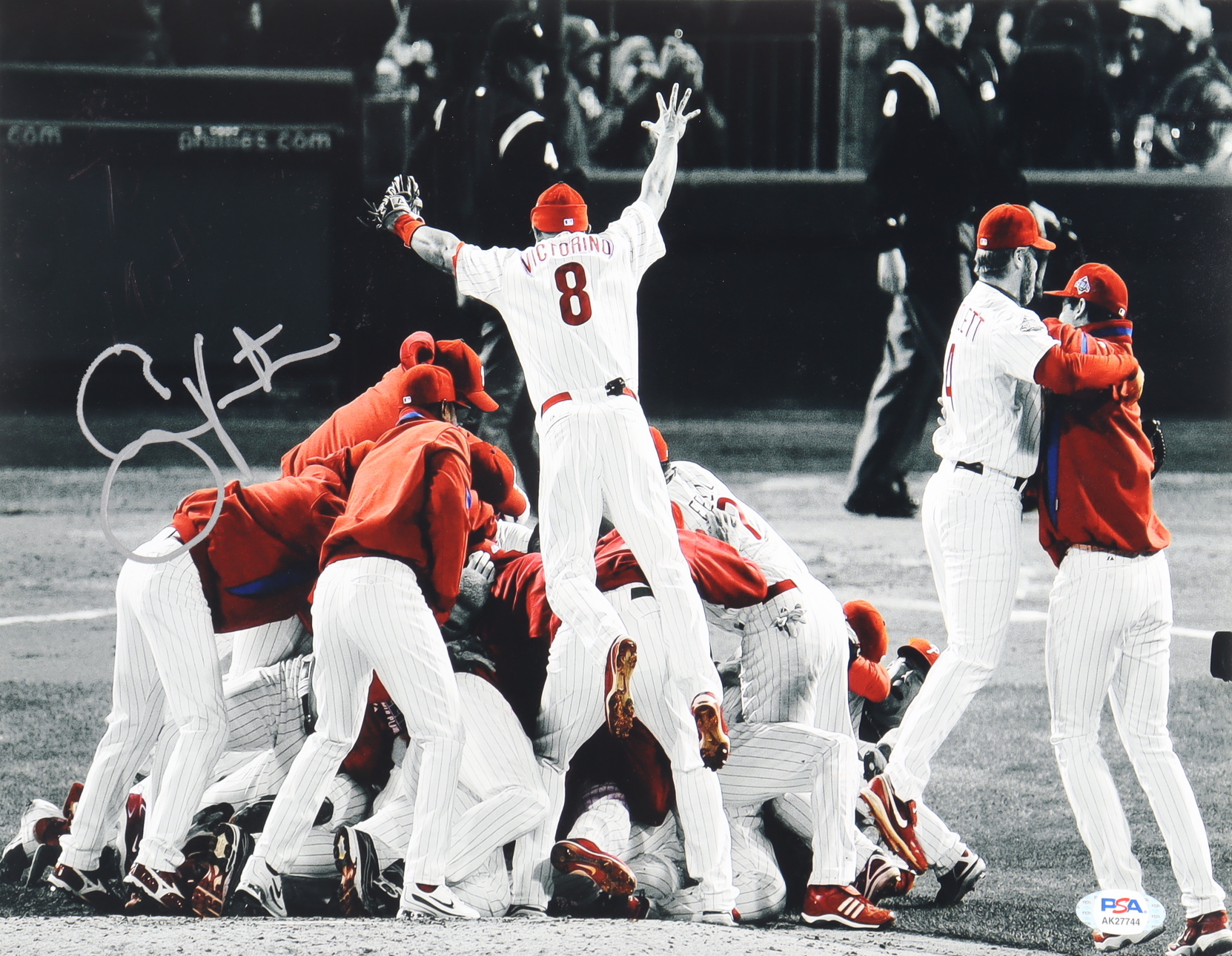 Photo measures 11" x 14" in size and has been hand-signed by Shane Victorino (Philadelphia Phillies).
