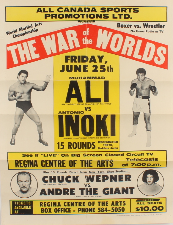 Muhammad Ali vs. Antonio Enoki & Chuck Wepner vs. Andre the Giant "The War of the Worlds" 19x25 Fight Poster