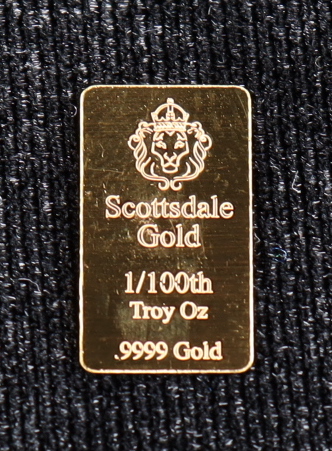 1/100 oz Scottsdale Mint Gold Bullion Bar