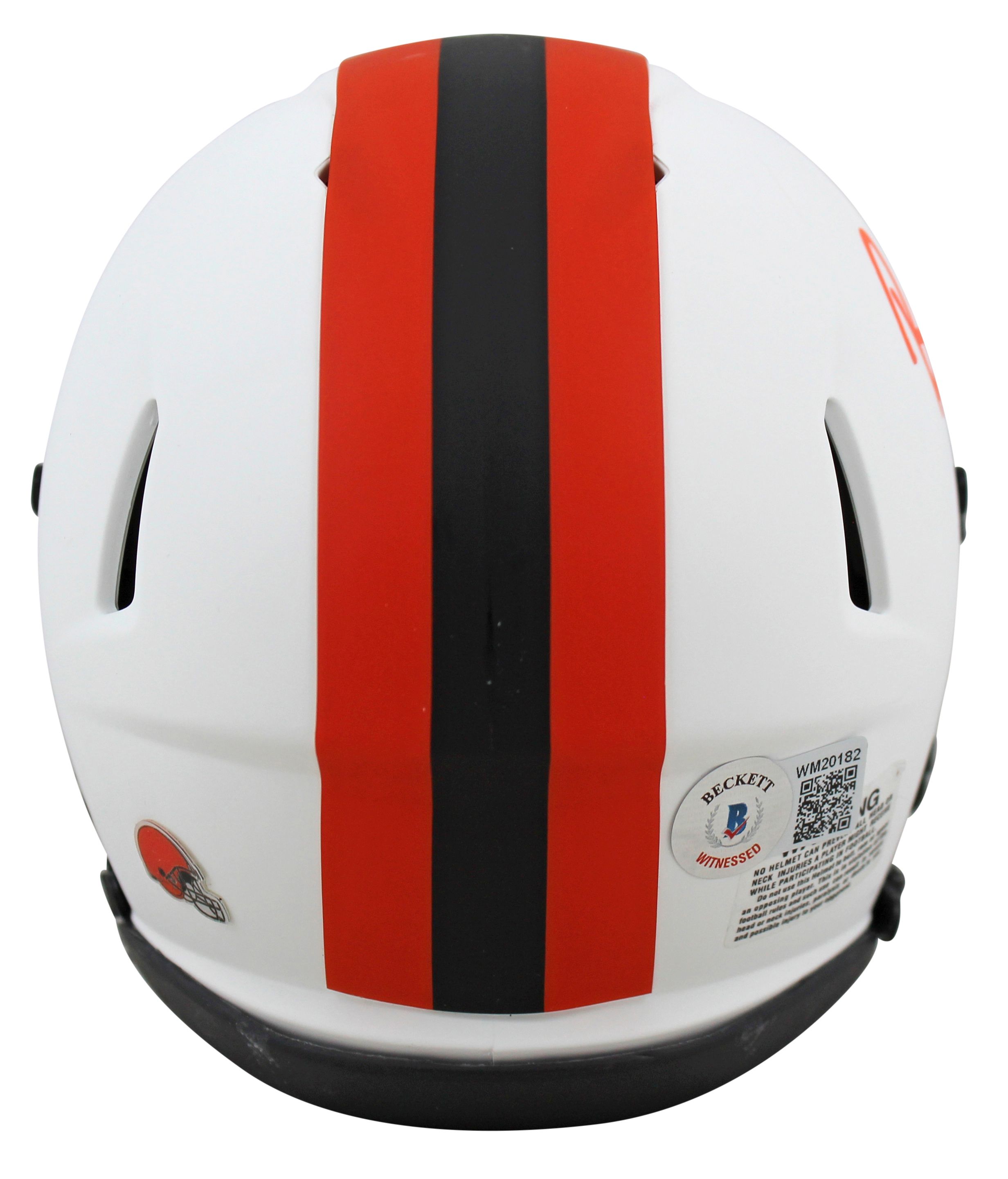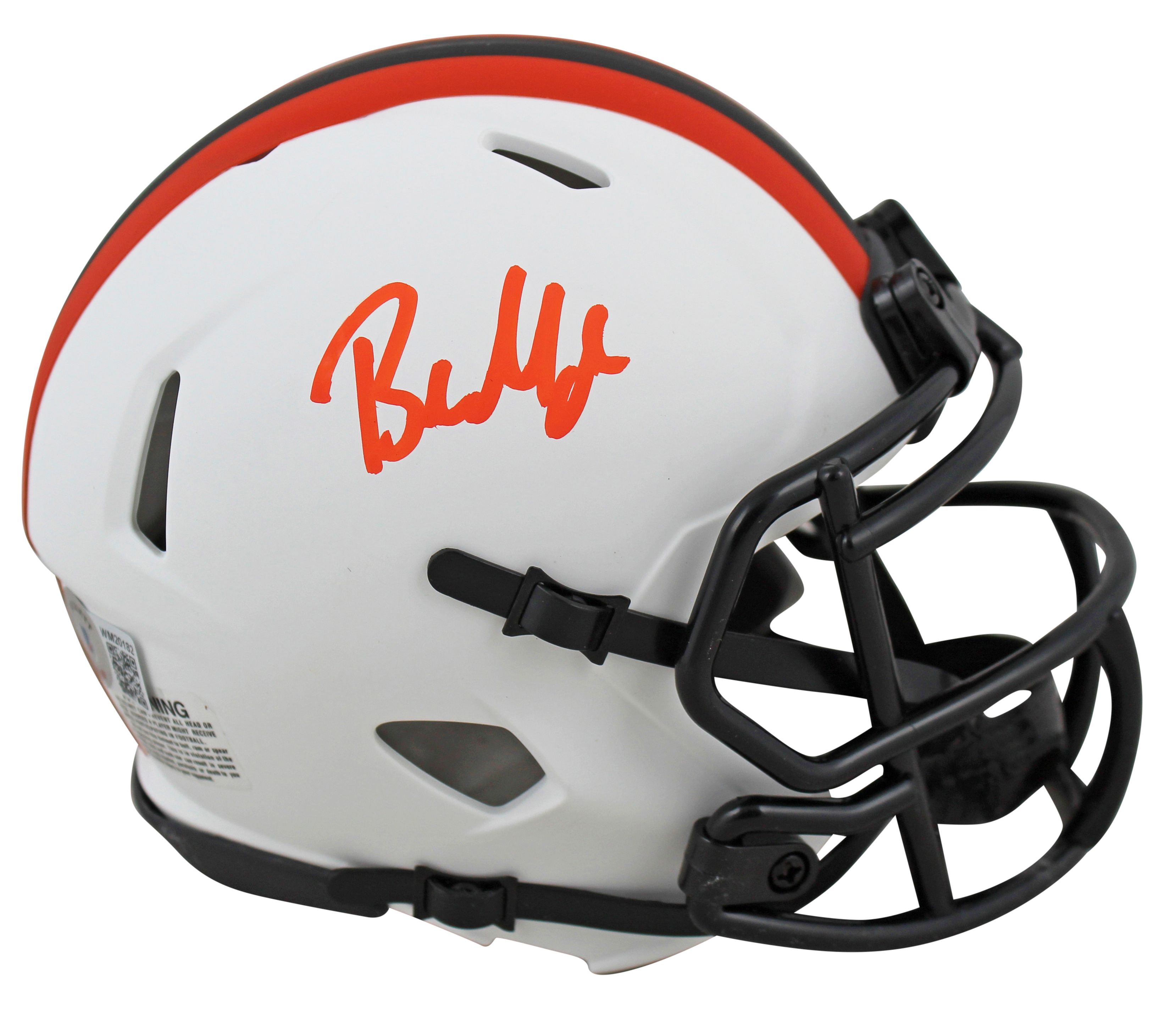 Riddell Cleveland Browns Lunar Eclipse Alternate Speed mini helmet. Hand-signed by Baker Mayfield.