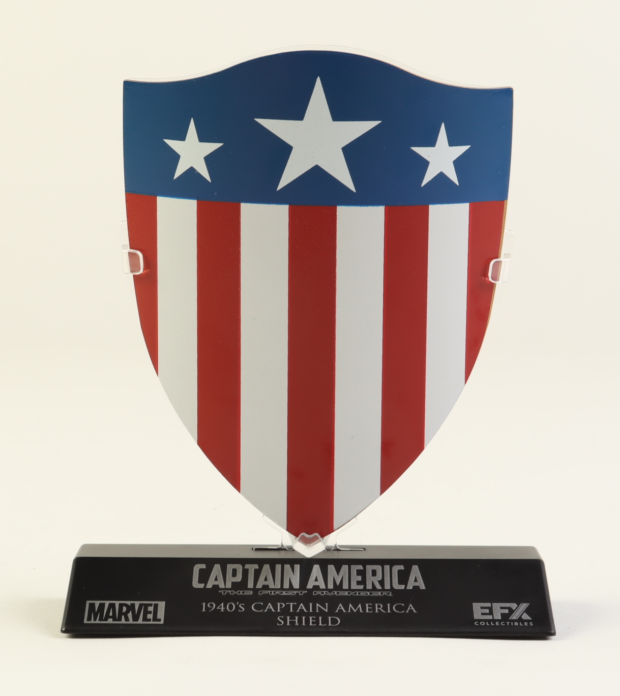 "Captain America: The First Avenger" movie prop replica. The prop is made of metal and measures 4.5". Includes display base a shown.
