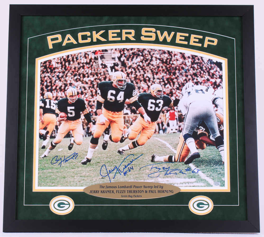 Packer Sweep 24x26 Custom Framed Photo Display Signed by Paul Hornung, Jerry Kramer & Fuzzy Thurston (Stacks Of Plaques)