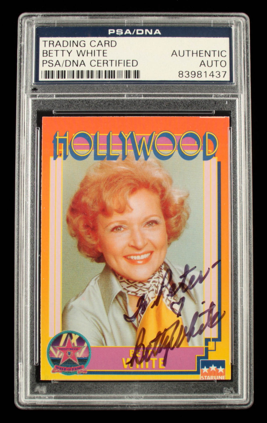 Card has been hand-signed by Betty White (D. 2021). Please note, card has been personalized "To Peter". See images for details regarding the condition.