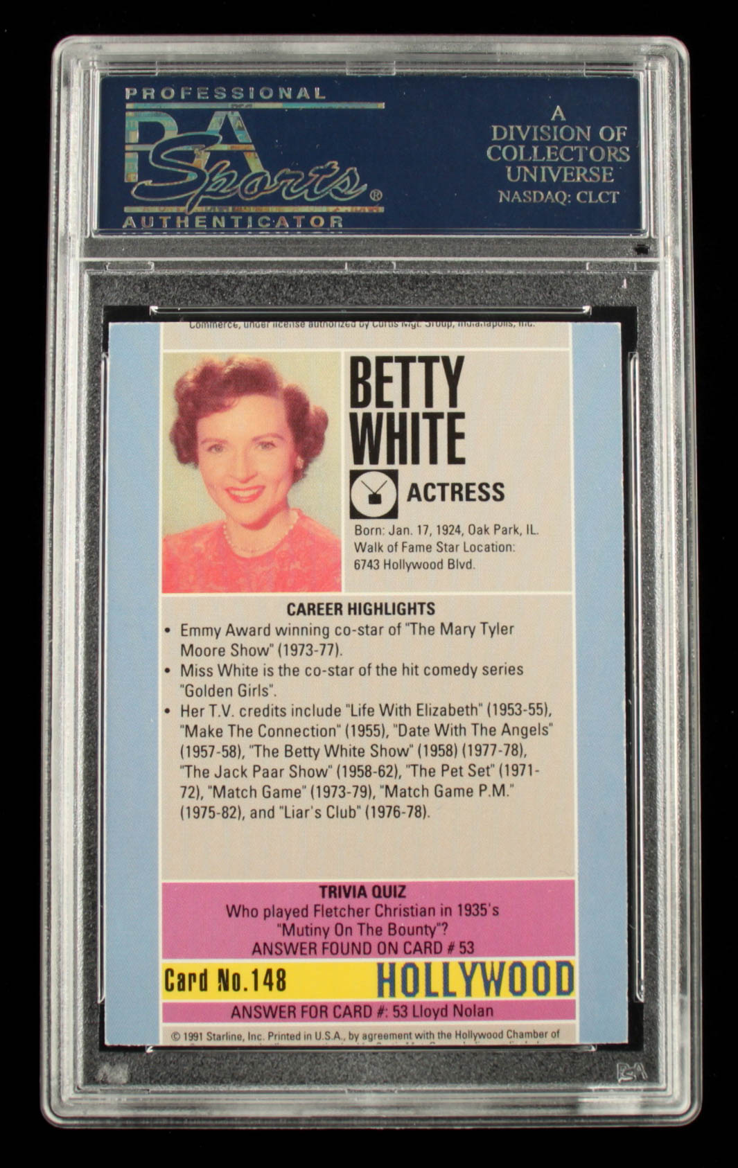 Betty White Signed 1991 Hollywood Walk of Fame #148 (PSA)