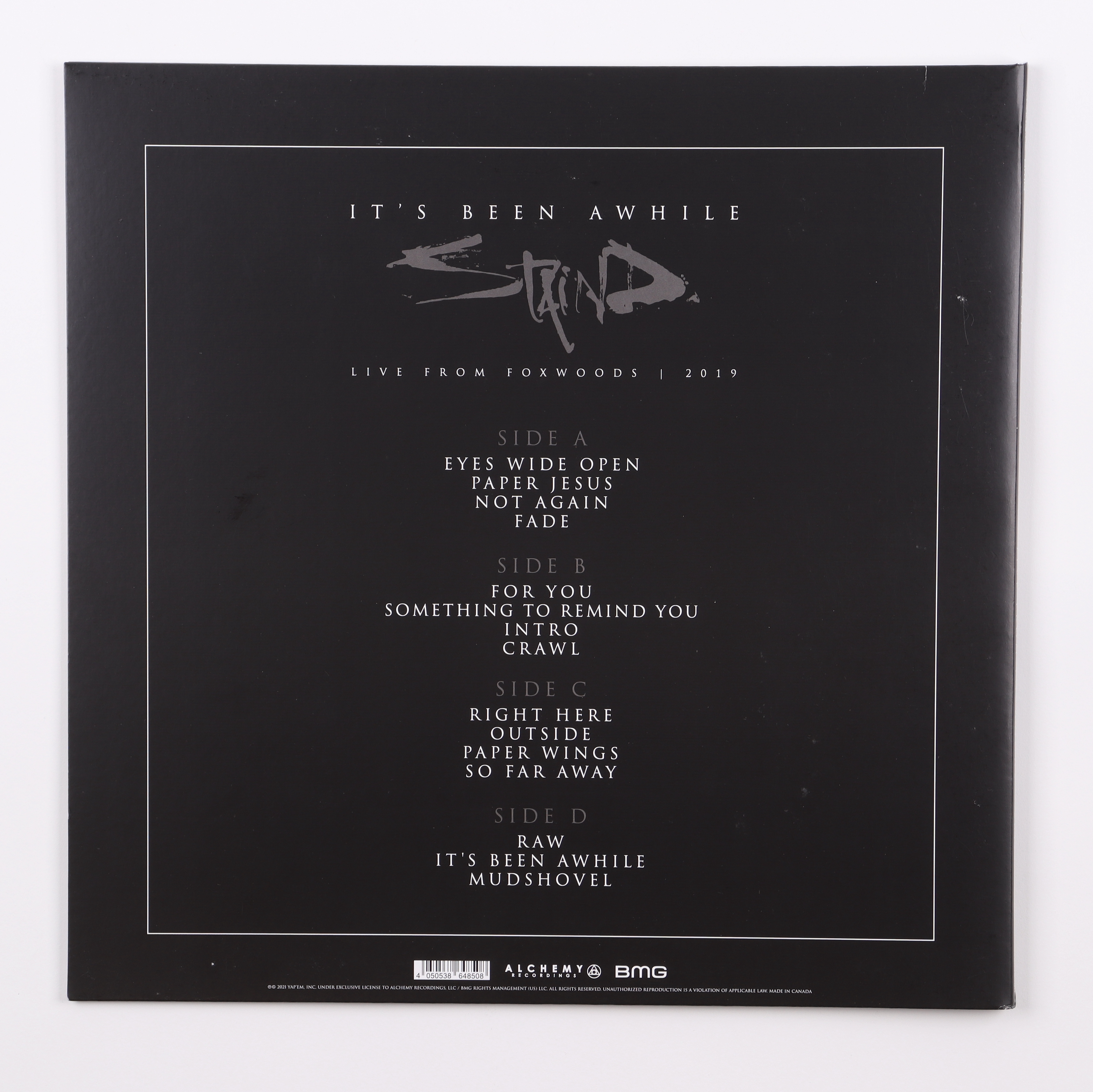 "It's Been Awhile" vinyl record album has been hand-signed on the cover by all (4) members of the band Staind; Aaron Lewis, Mike Mushok, Johnny April, and Sal Giancarelli. Vinyl record is not included. Please note, the cover shows signs of wear.