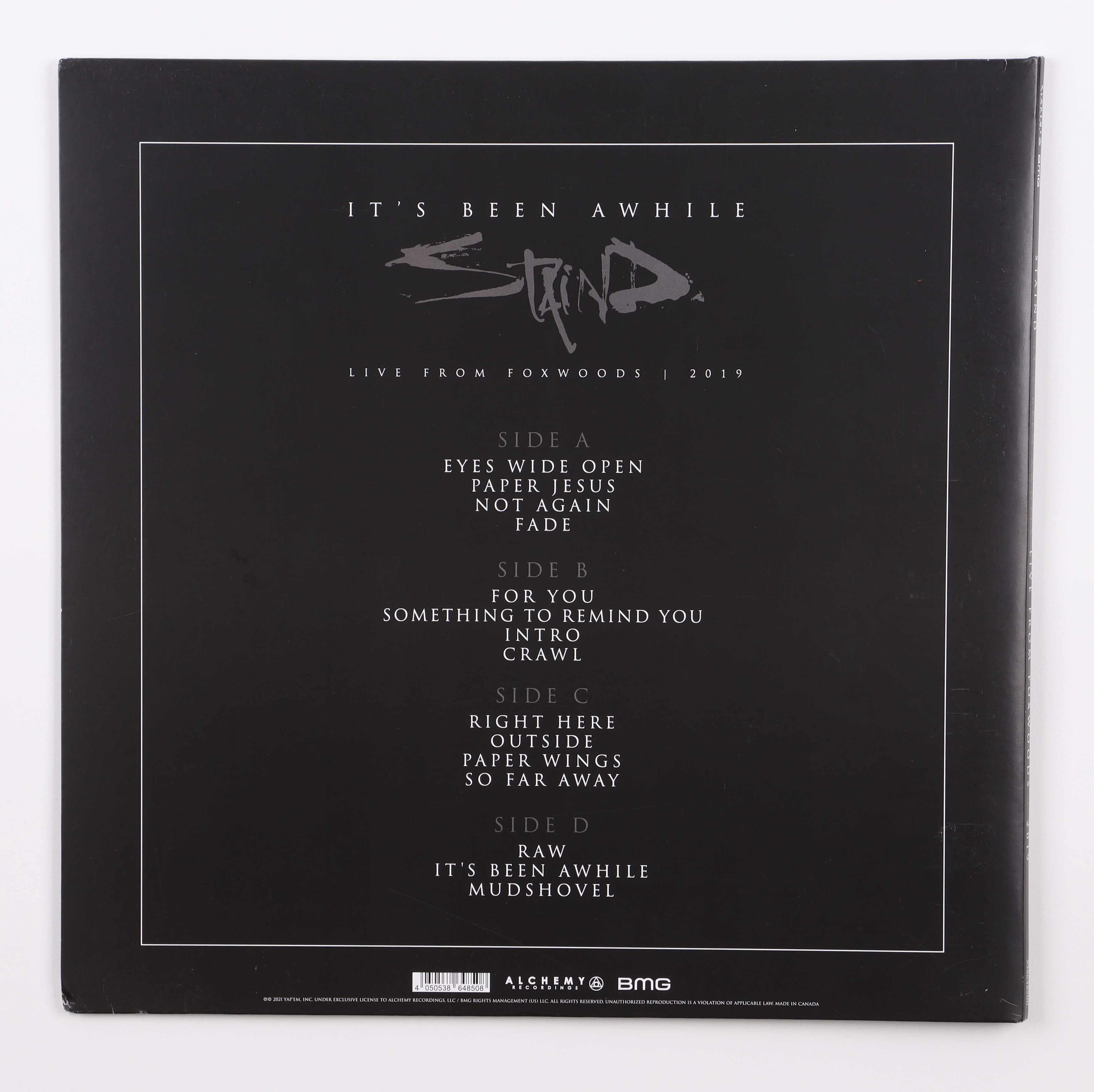 "It's Been Awhile" vinyl record album has been hand-signed on the cover by all (4) members of the band Staind; Aaron Lewis, Mike Mushok, Johnny April, and Sal Giancarelli. Vinyl record is not included. Please note, the cover shows signs of wear.