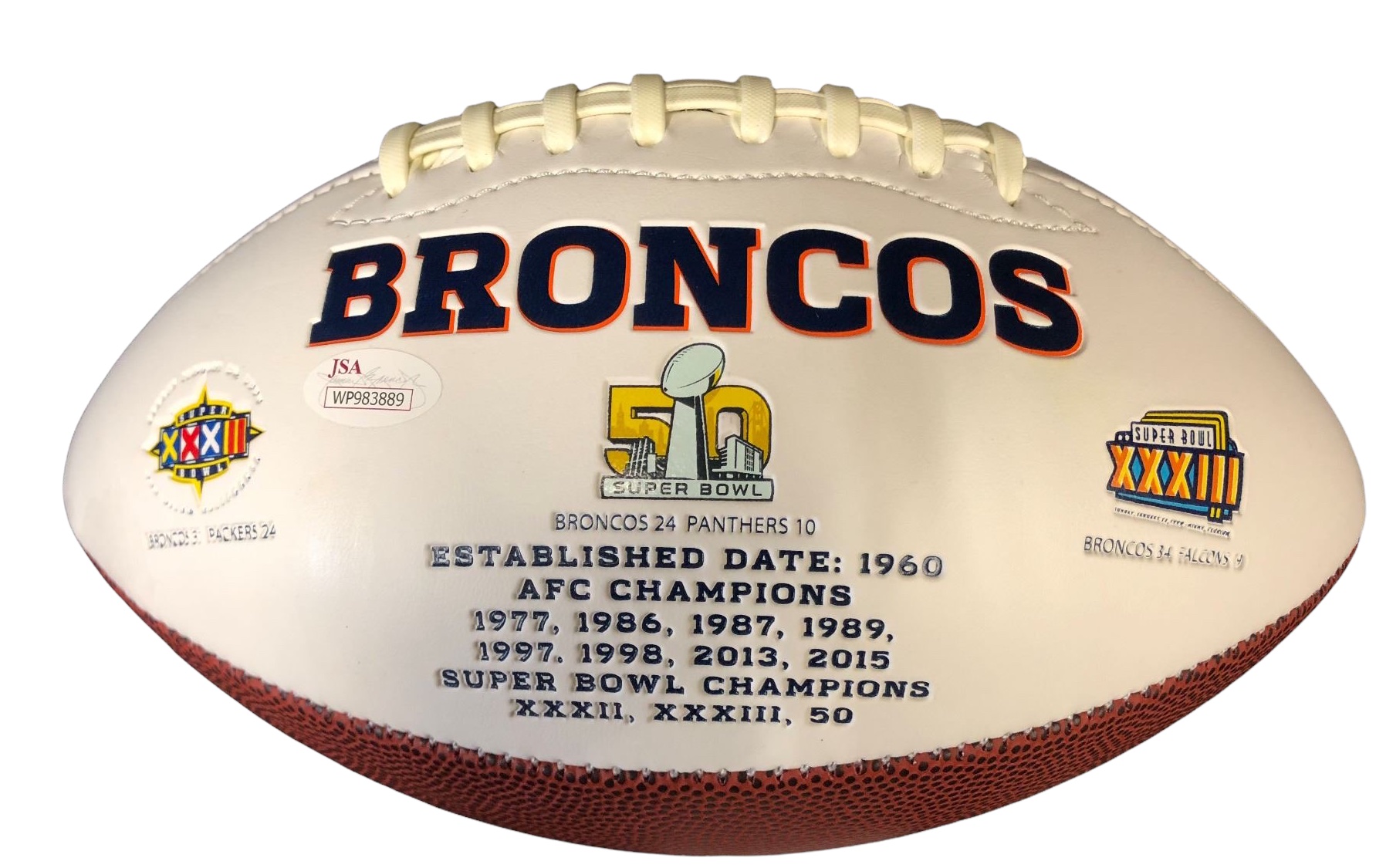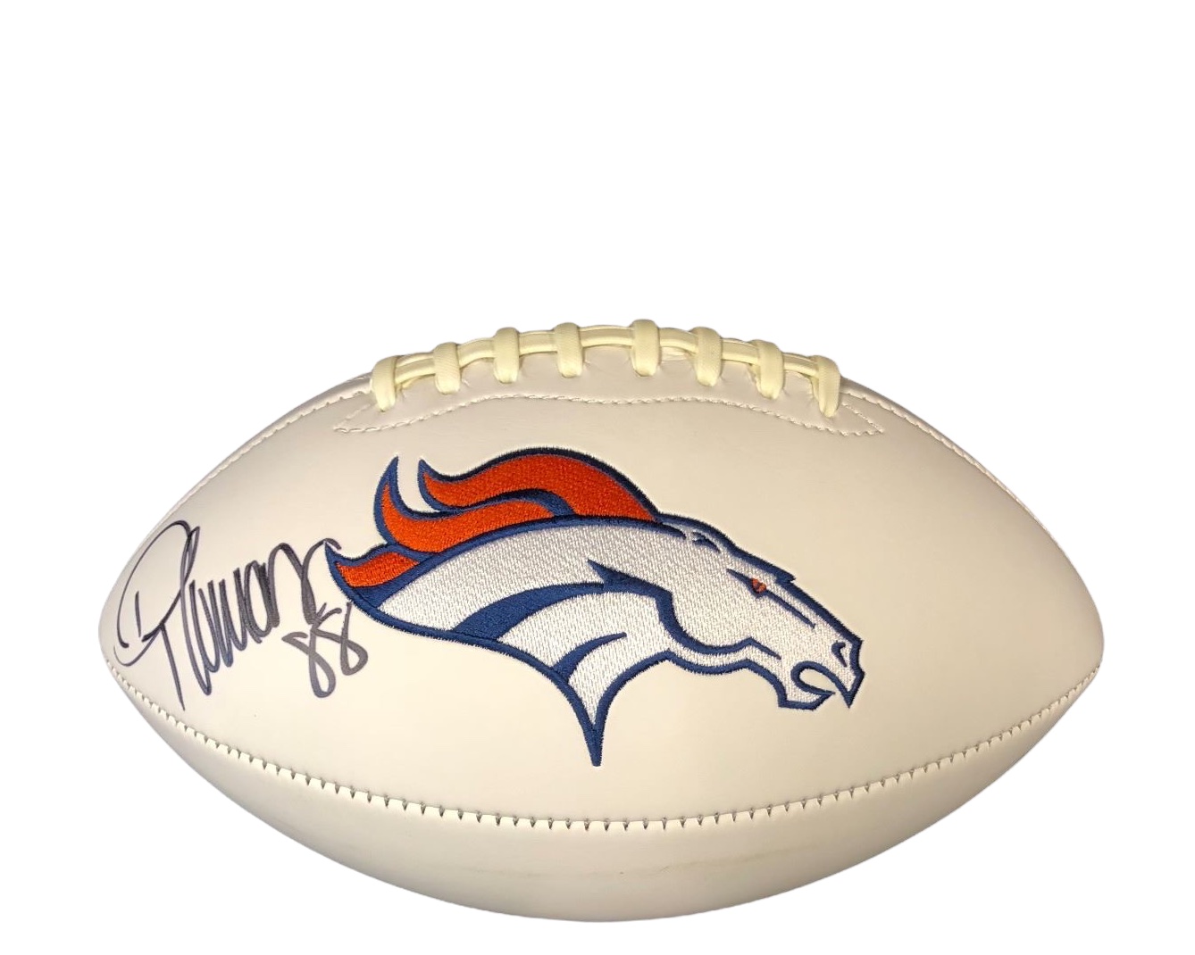 Denver Broncos logo football has been hand-signed by Demaryius Thomas (D. 2021).