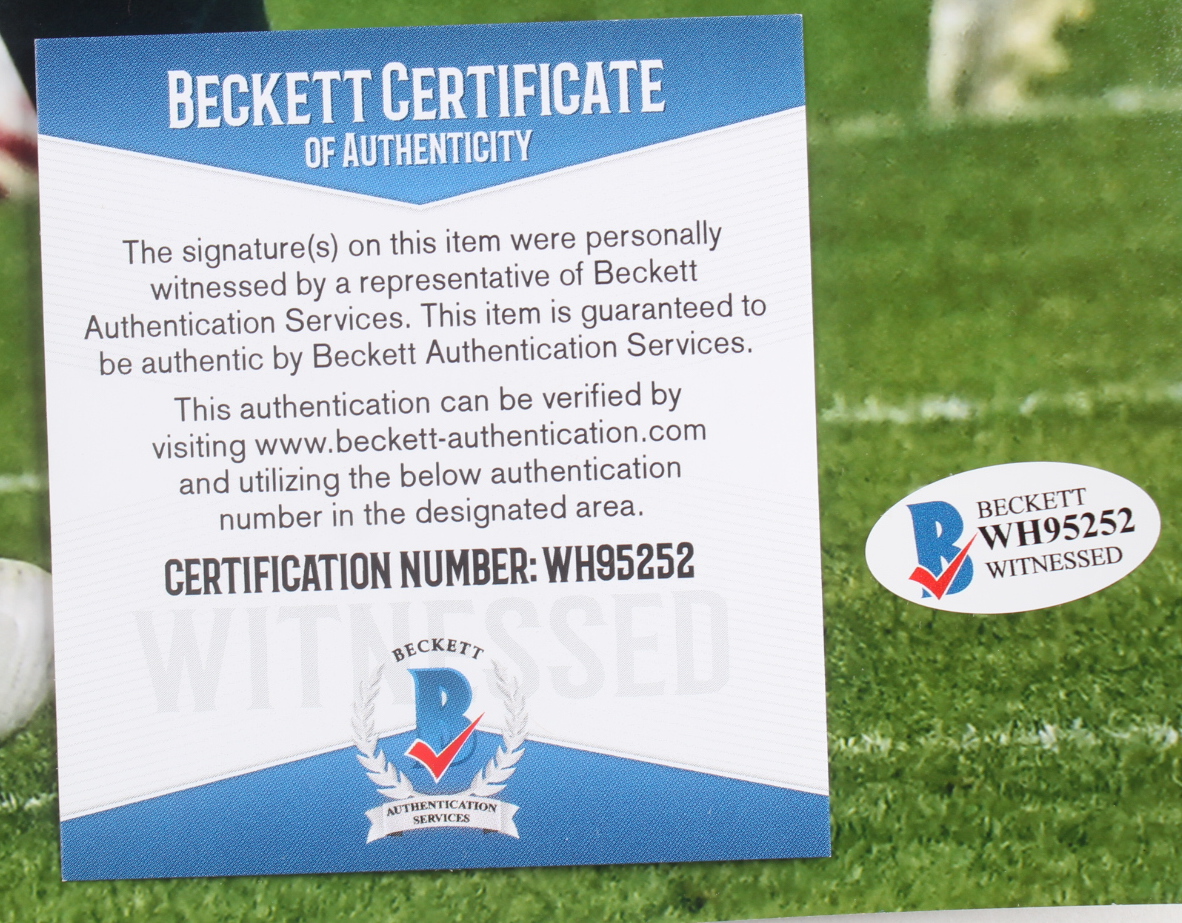 The lot / autograph(s) includes an official Beckett Authentication Services serially-numbered hologram and matching COA for authenticity purposes. The signing of this item was witnessed by Beckett.