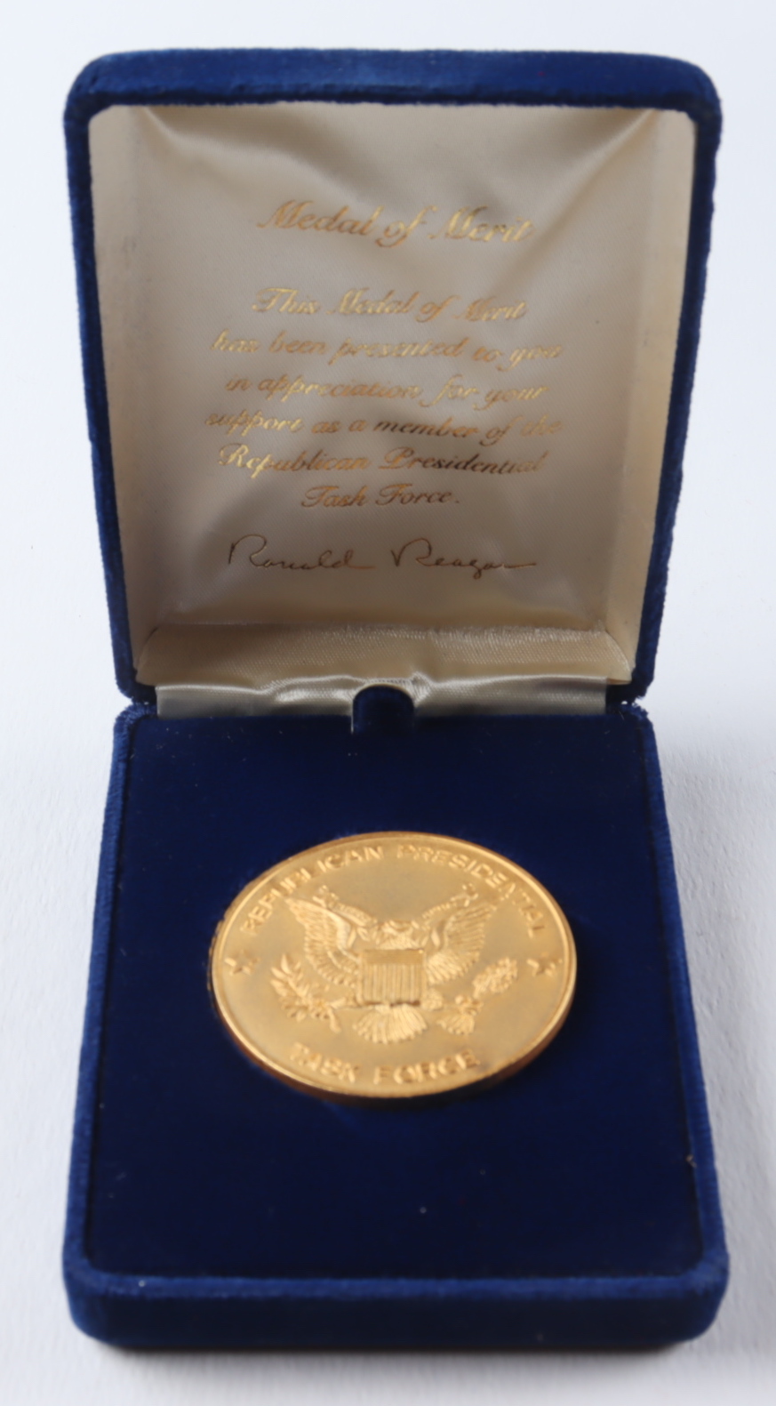 Ronald Reagan Gold Medal of Merit Republican Task Force Medallion with Original Display Case