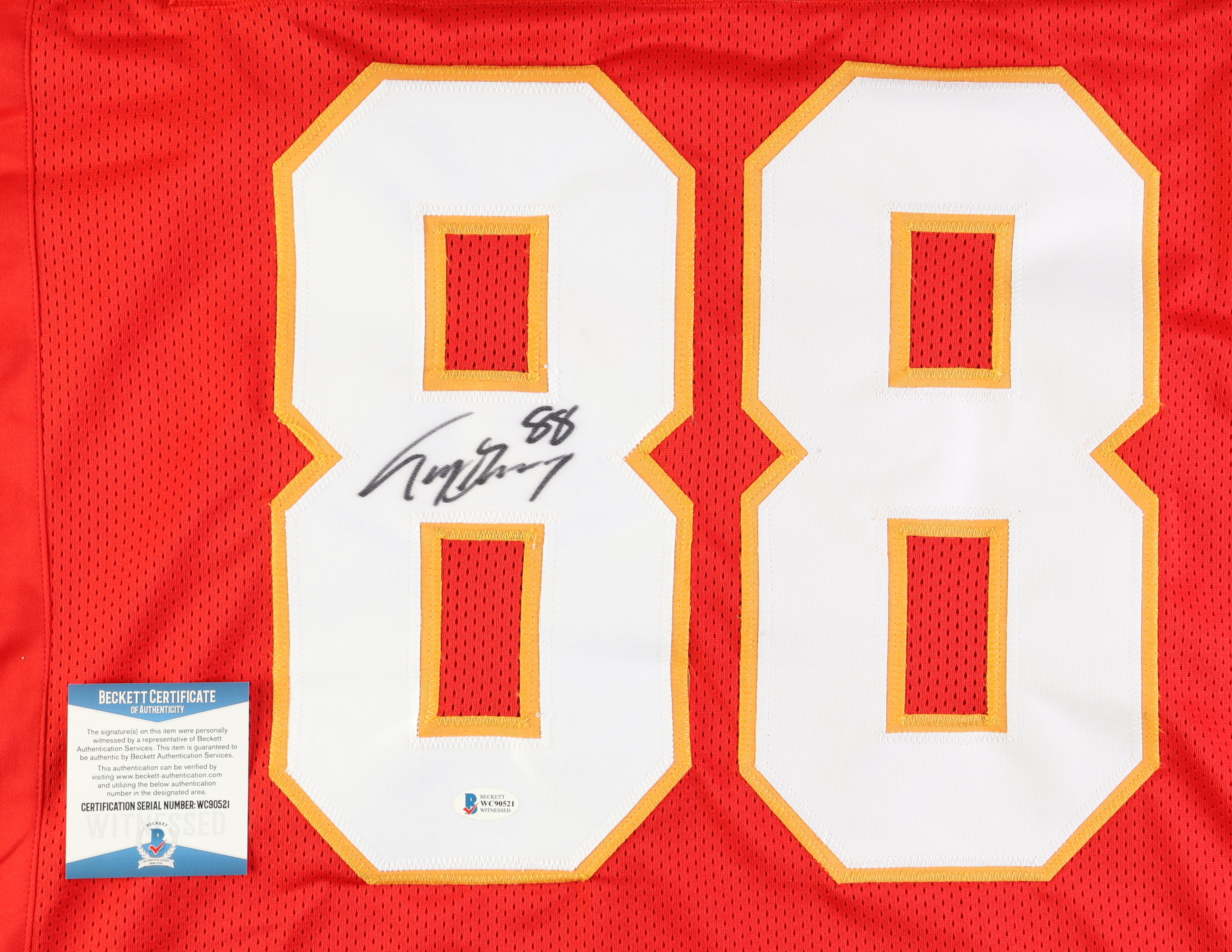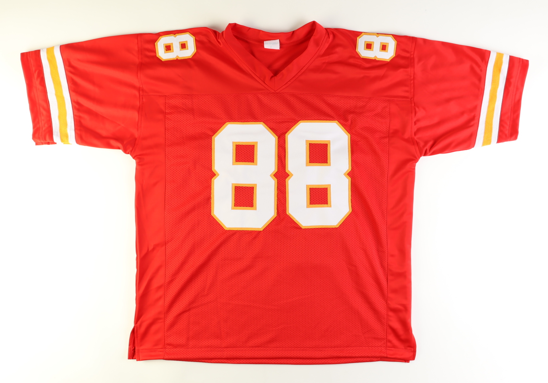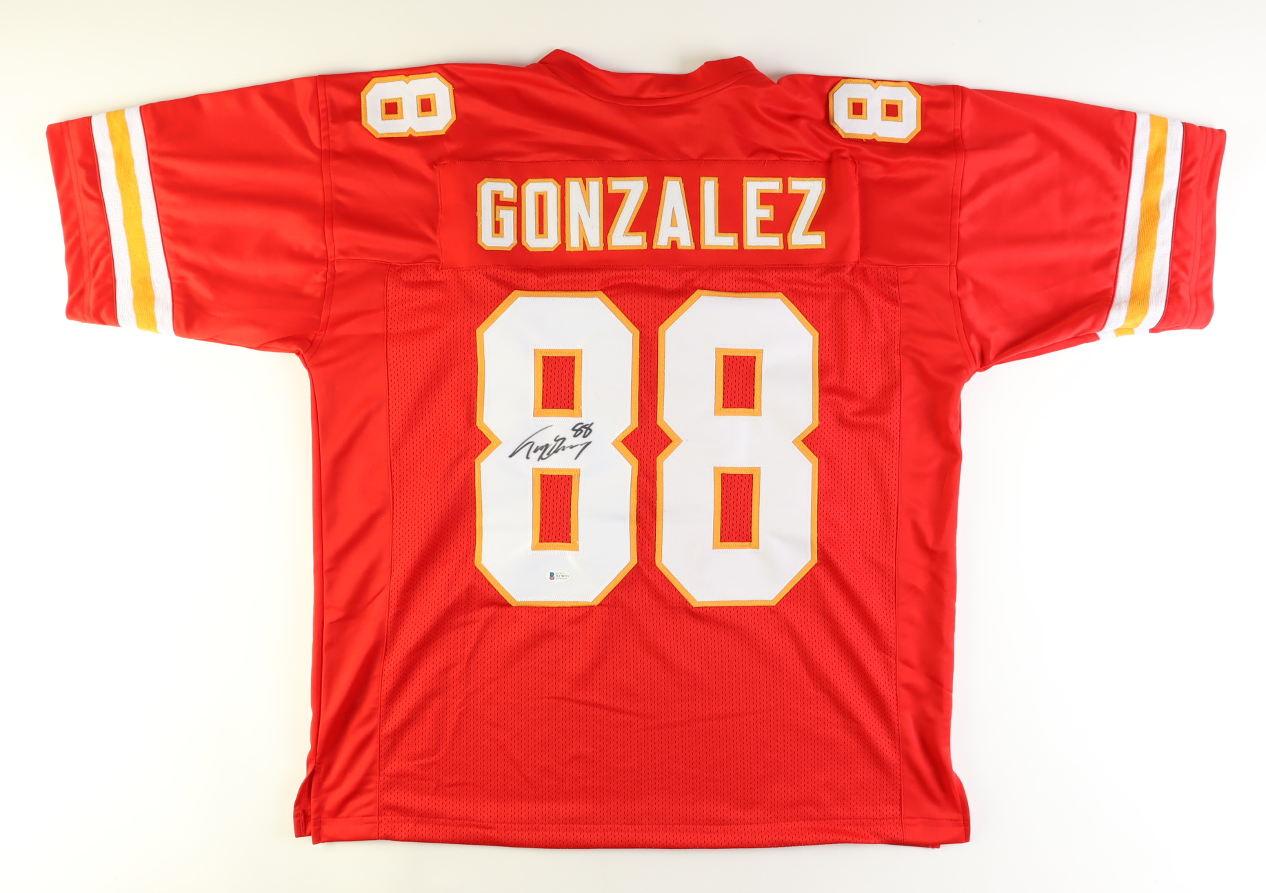 Custom on-field style jersey. Everything is sewn on, size XL. Hand-signed by Tony Gonzalez (HOF). Please note, there is a small stain on the back of the jersey to the right of the last name.