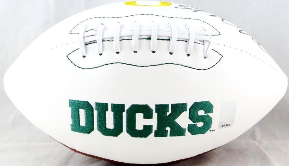 Oregon Ducks logo football. Hand-signed by Marcus Mariota.
