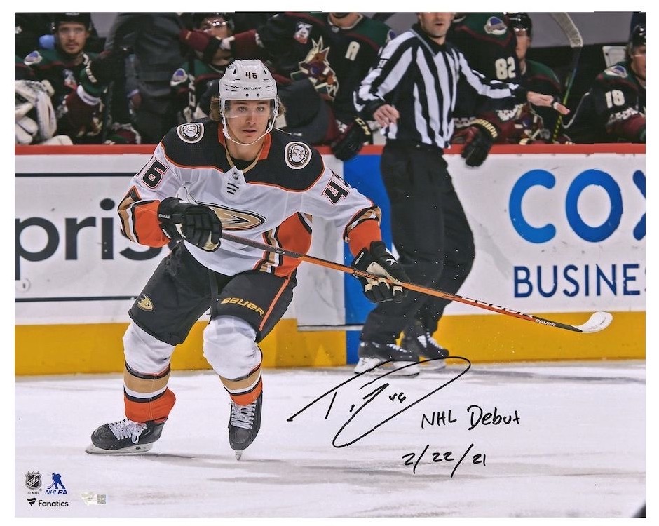 Trevor Zegras Signed Ducks 16x20 Photo Inscribed "NHL Debut 2/22/21" (Fanatics)