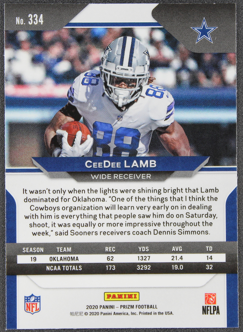 CeeDee Lamb 2020 Panini Prizm Black and White #334B RC