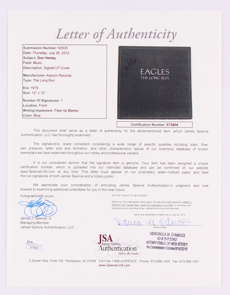 Don Henley Signed Eagles "The Long Run" Record Album (JSA LOA)