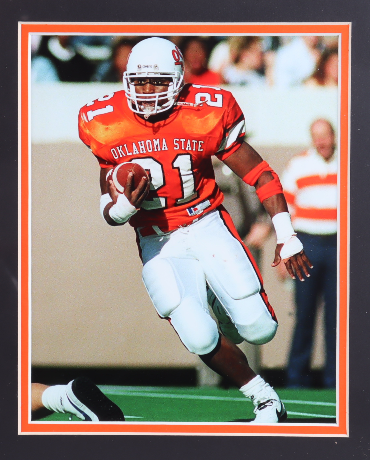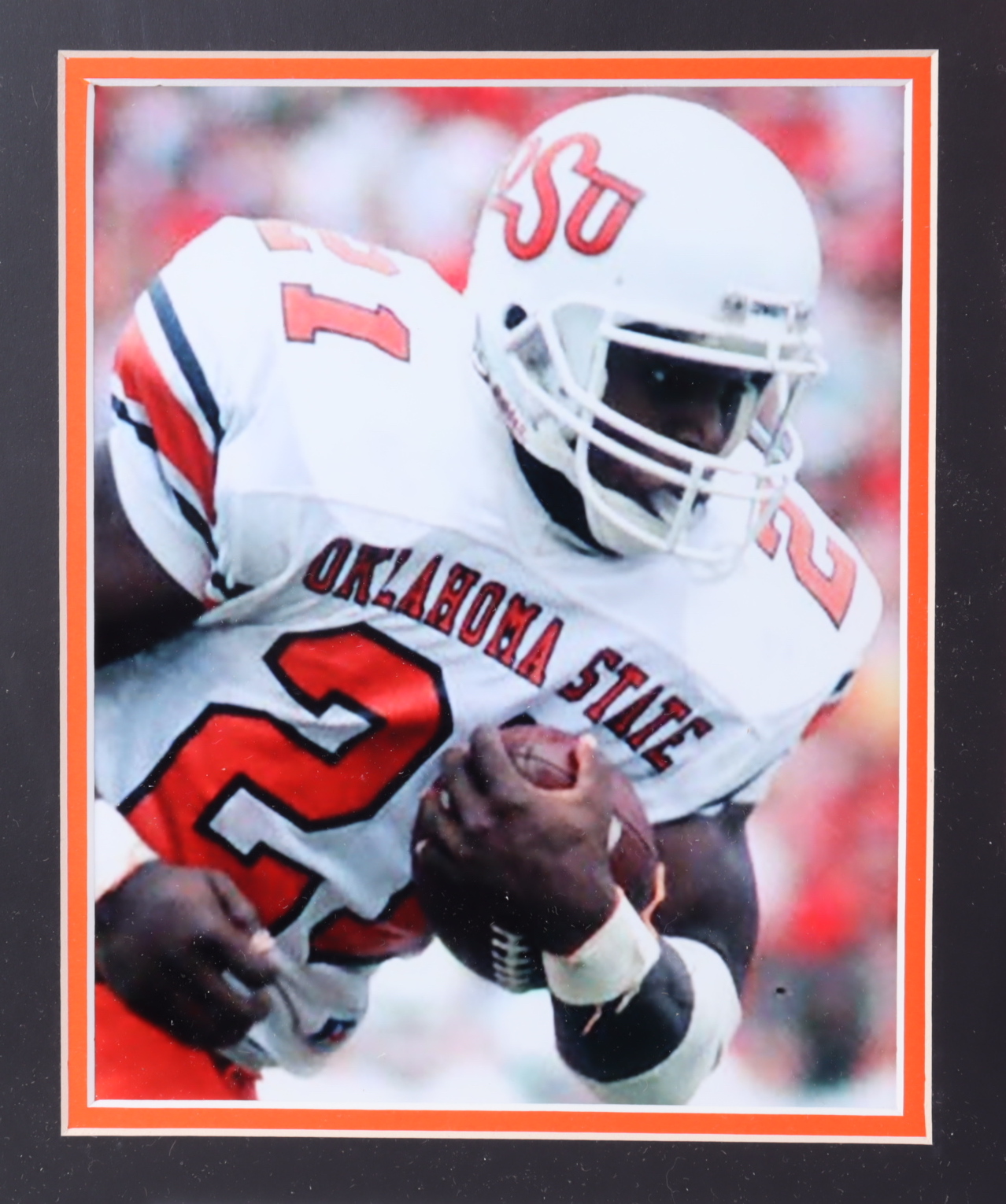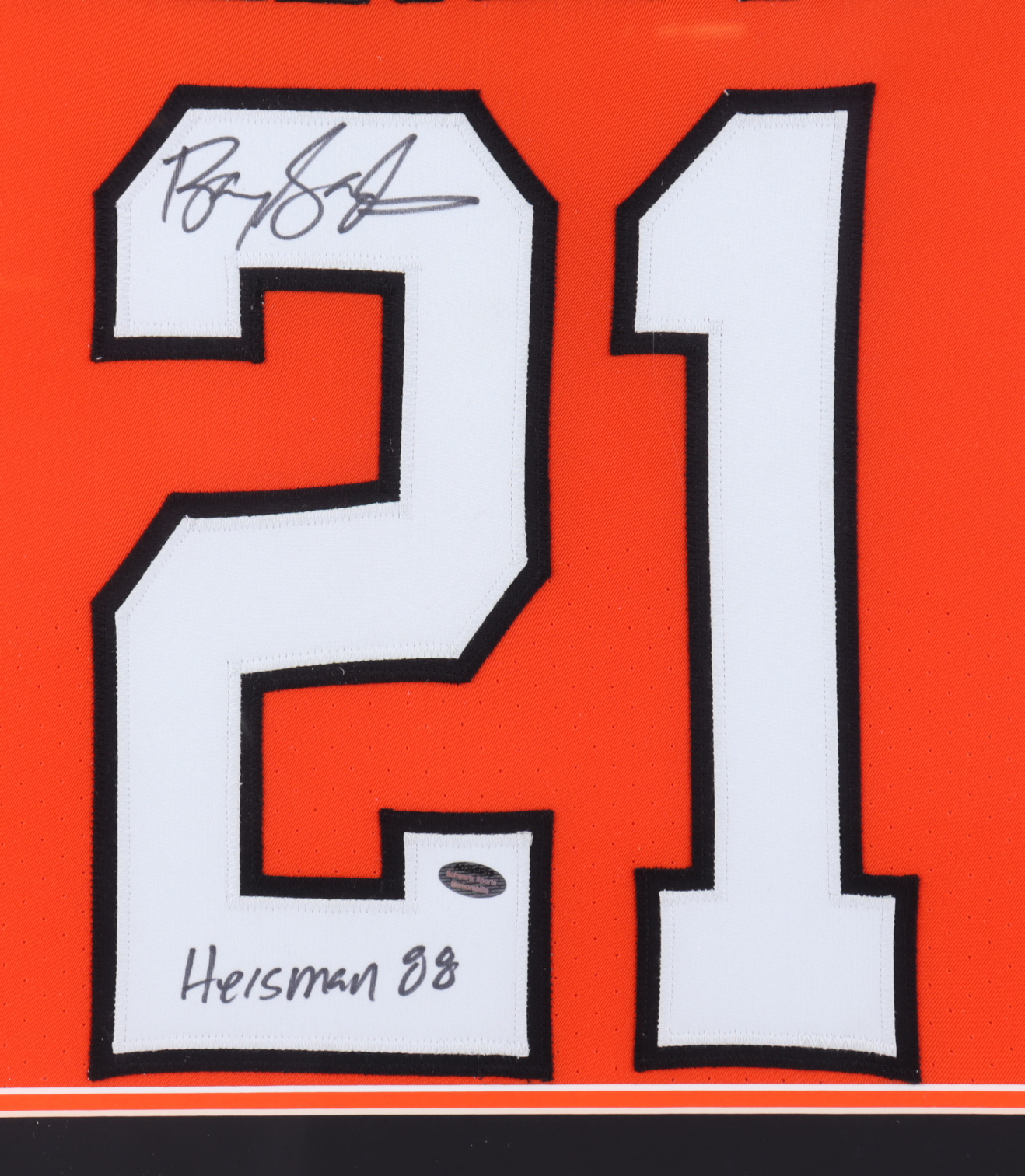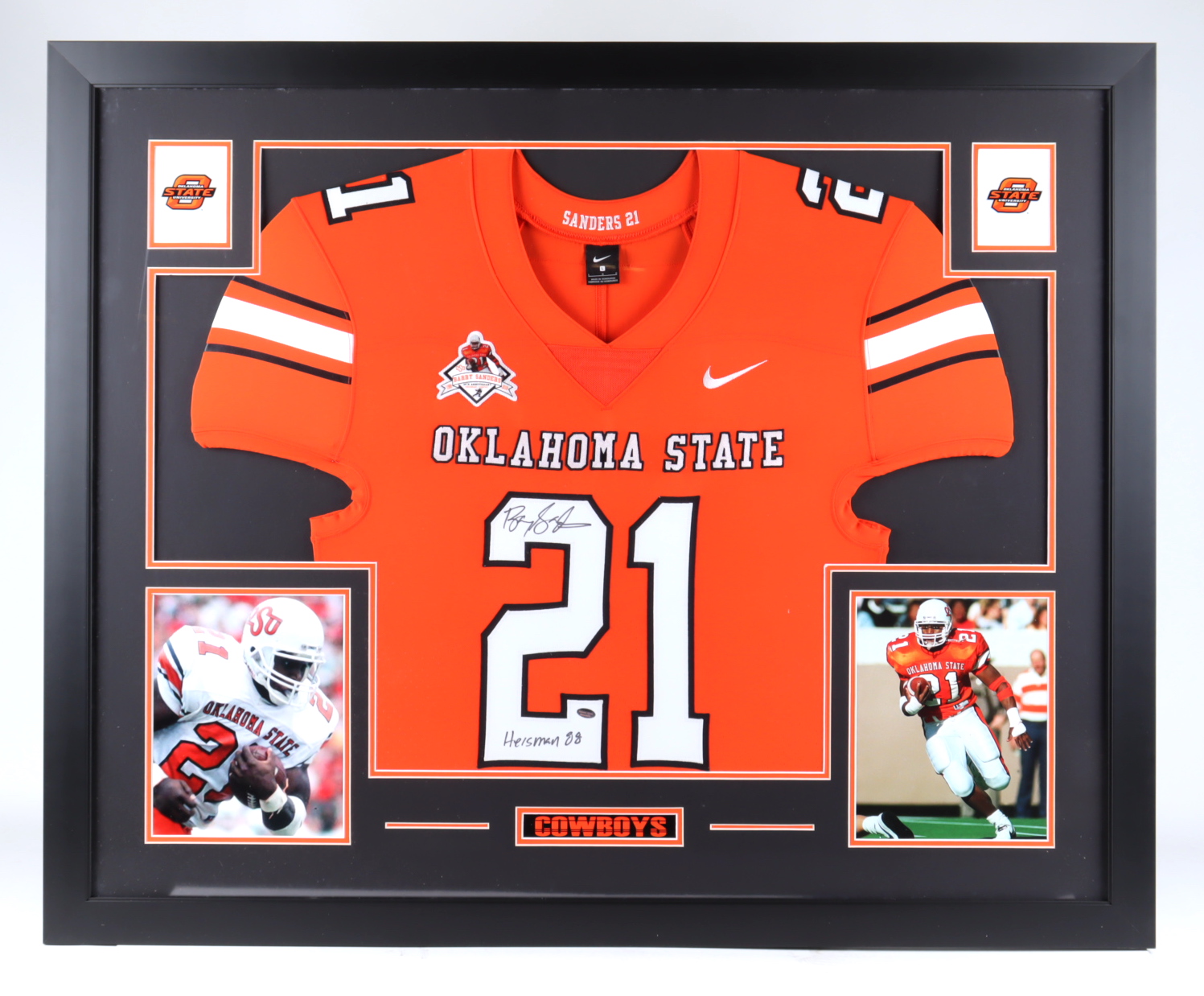 Barry Sanders Signed Oklahoma State Cowboys 35x43 Custom Framed Jersey Display Inscribed "Heisman 88" (Schwartz Sports)