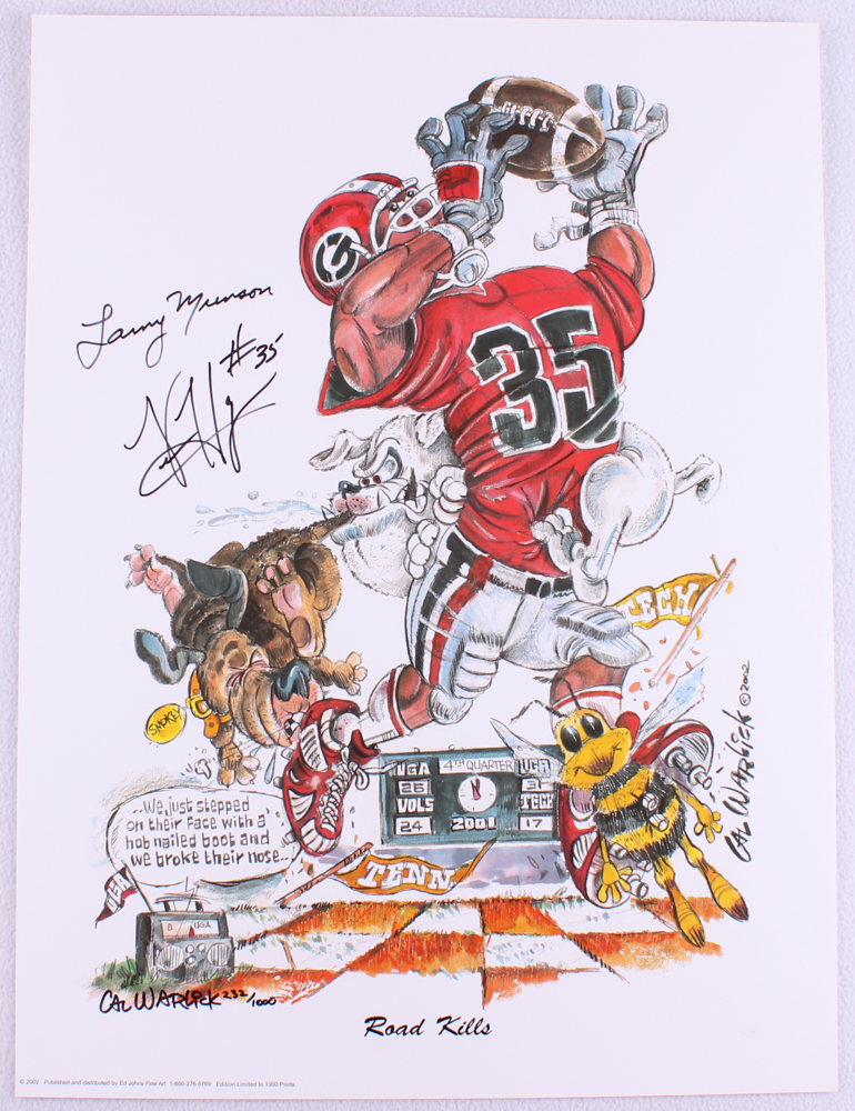 Larry Munson & Verron Haynes Signed "Road Kills" Georgia 18x24 LE Lithograph #232/1000 (Radtke Hologram)
