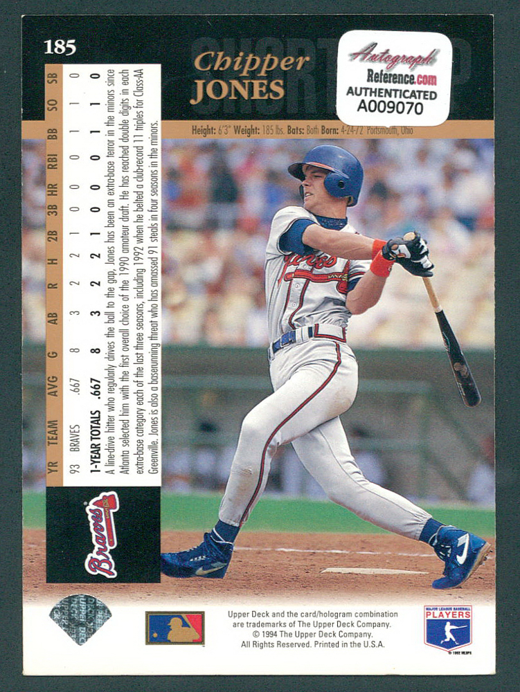 Chipper Jones Signed 1994 Upper Deck #185 (Autograph Reference COA)