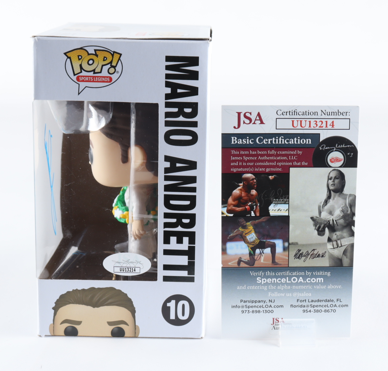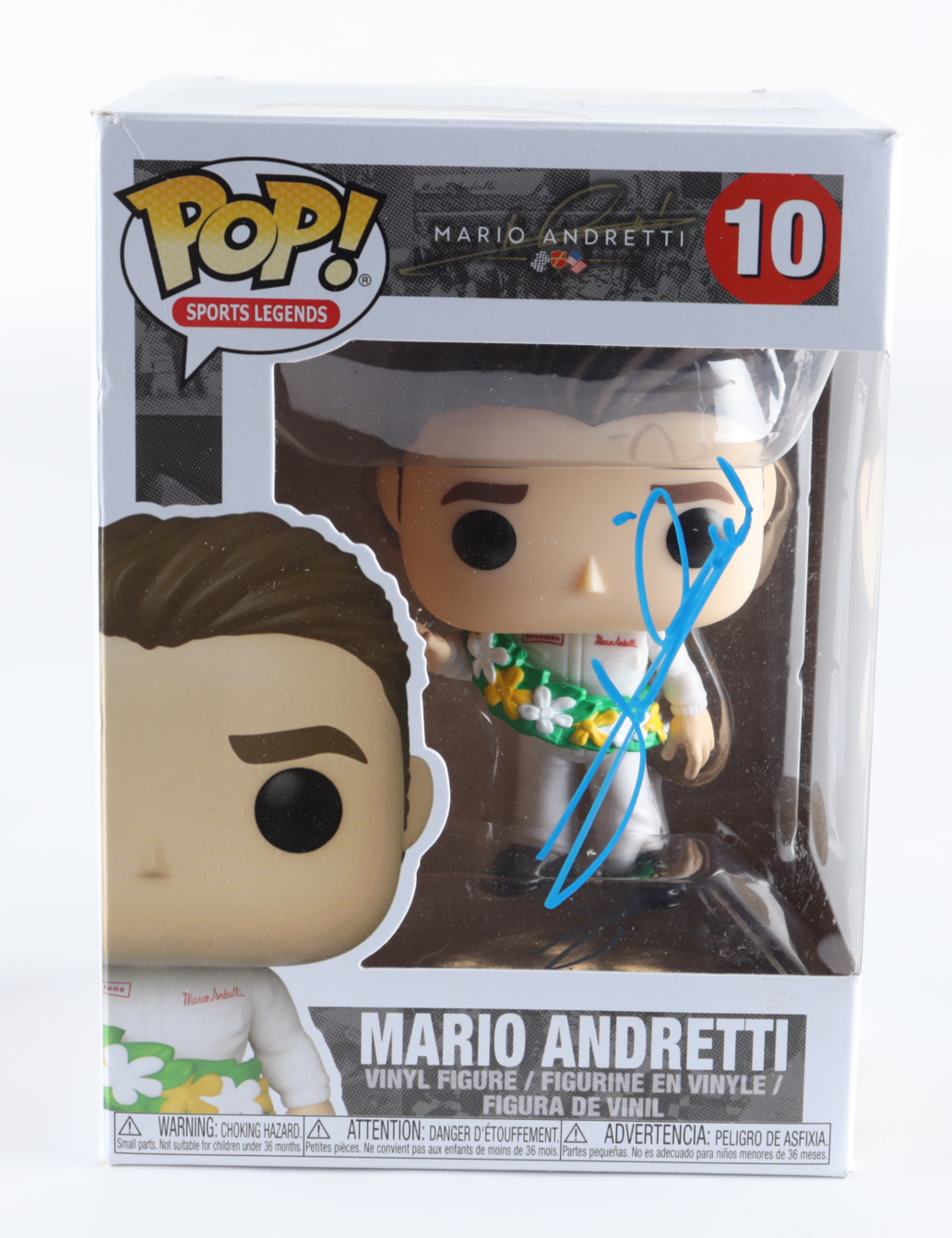Funko Pop! Vinyl figure measures approximately 4"and has been hand-signed on the packaging by Mario Andretti (HOF). Please note, the box shows light signs of handling and wear. See photos for more details.