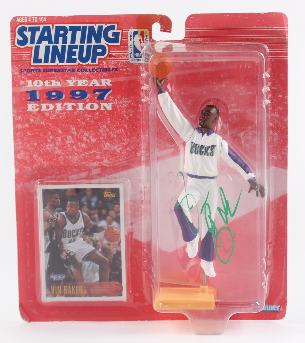 Starting Lineups 1997 Figure measures 4" in size and has been hand-signed on the packaging by Vin Baker (Milwaukee Bucks). Please see photos for more details regarding the condition of the box.