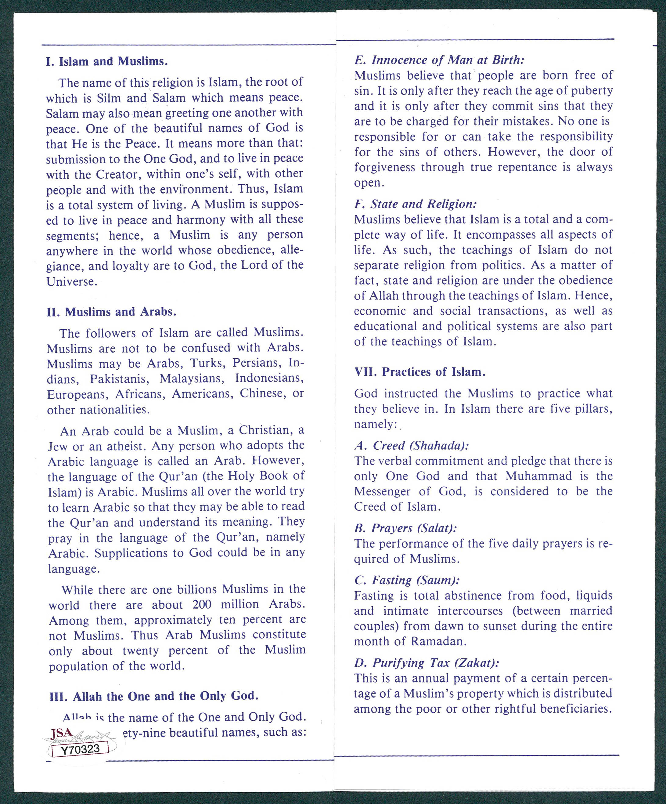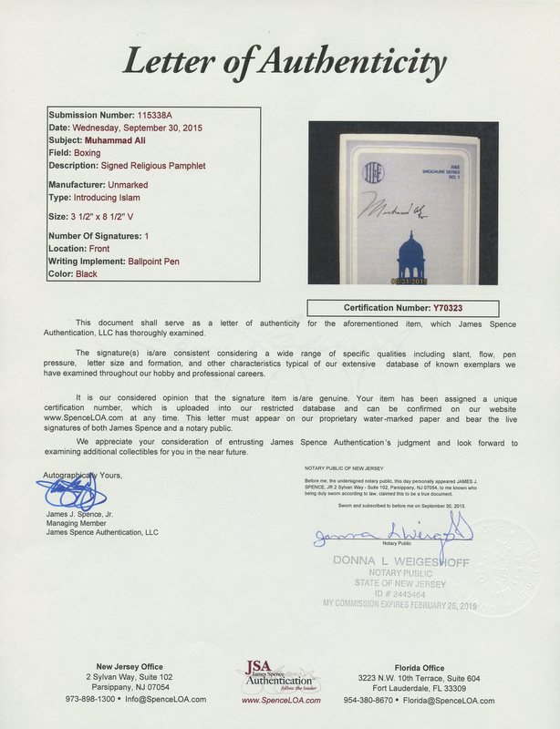 Muhammad Ali Signed "Introducing Islam" Islamic Brochure (JSA LOA)