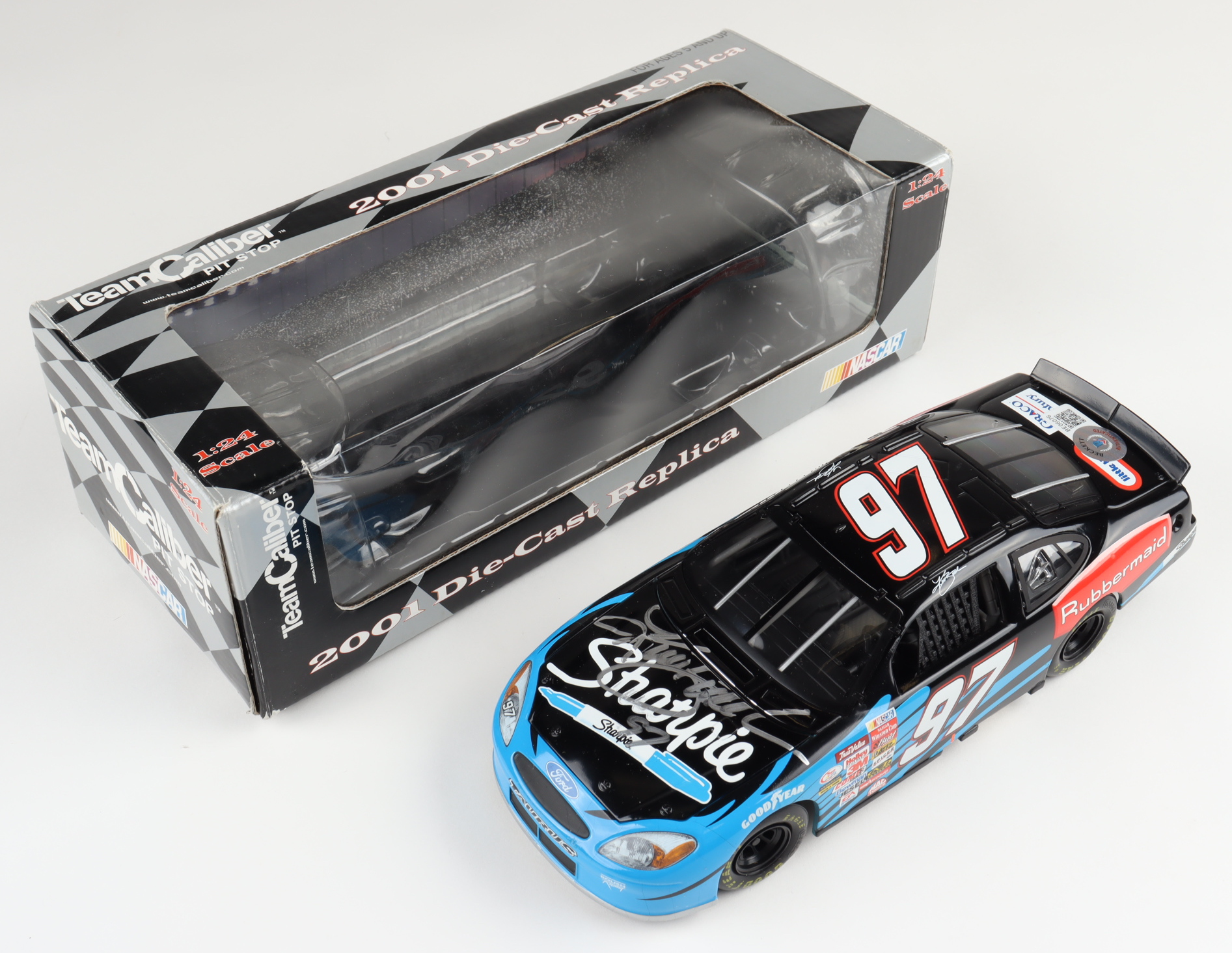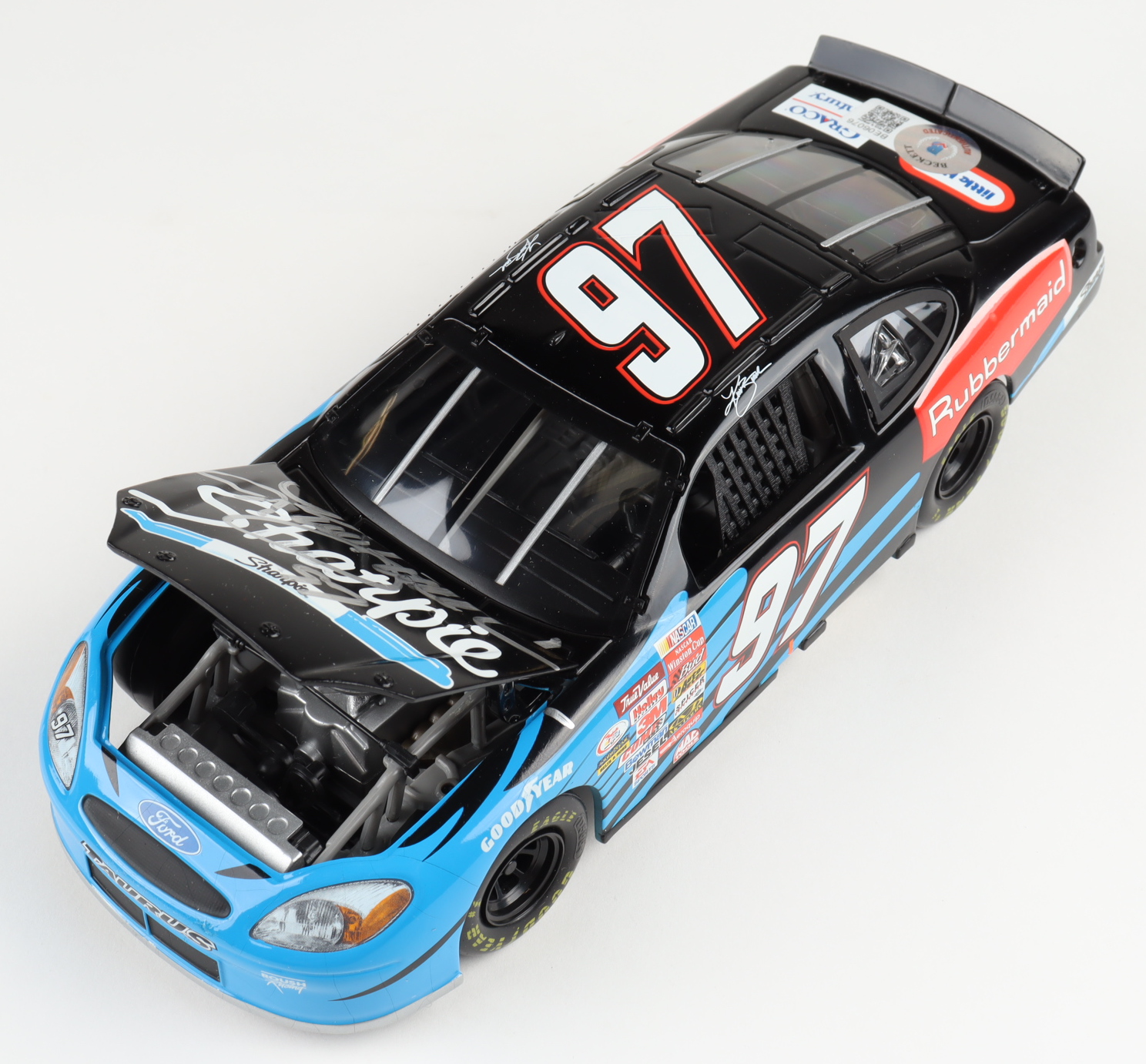 #97 Sharpie 2001 Taurus 1:24 Diecast Car comes with the original package shown. Hand-signed on the car by Kurt Busch. Diecast car has been made limited edition.