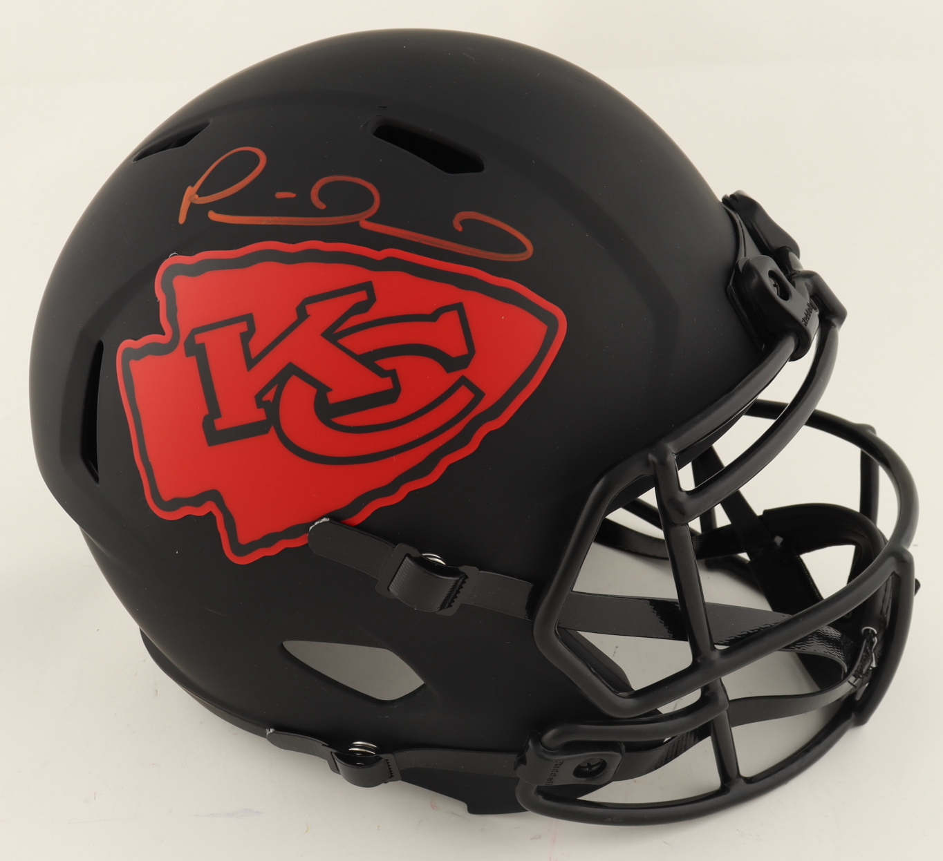 Riddell Kansas City Chiefs full-size replica eclipse alternate speed helmet. Hand-signed by Patrick Mahomes.