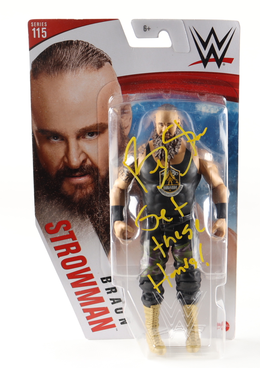 2020 Mattel WWE Series 115 Braun Strowman action figure measures approximately 7" tall and has been hand-signed and inscribed on the packaging by Braun Strowman.