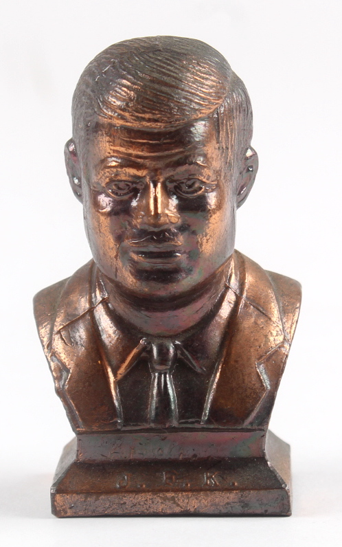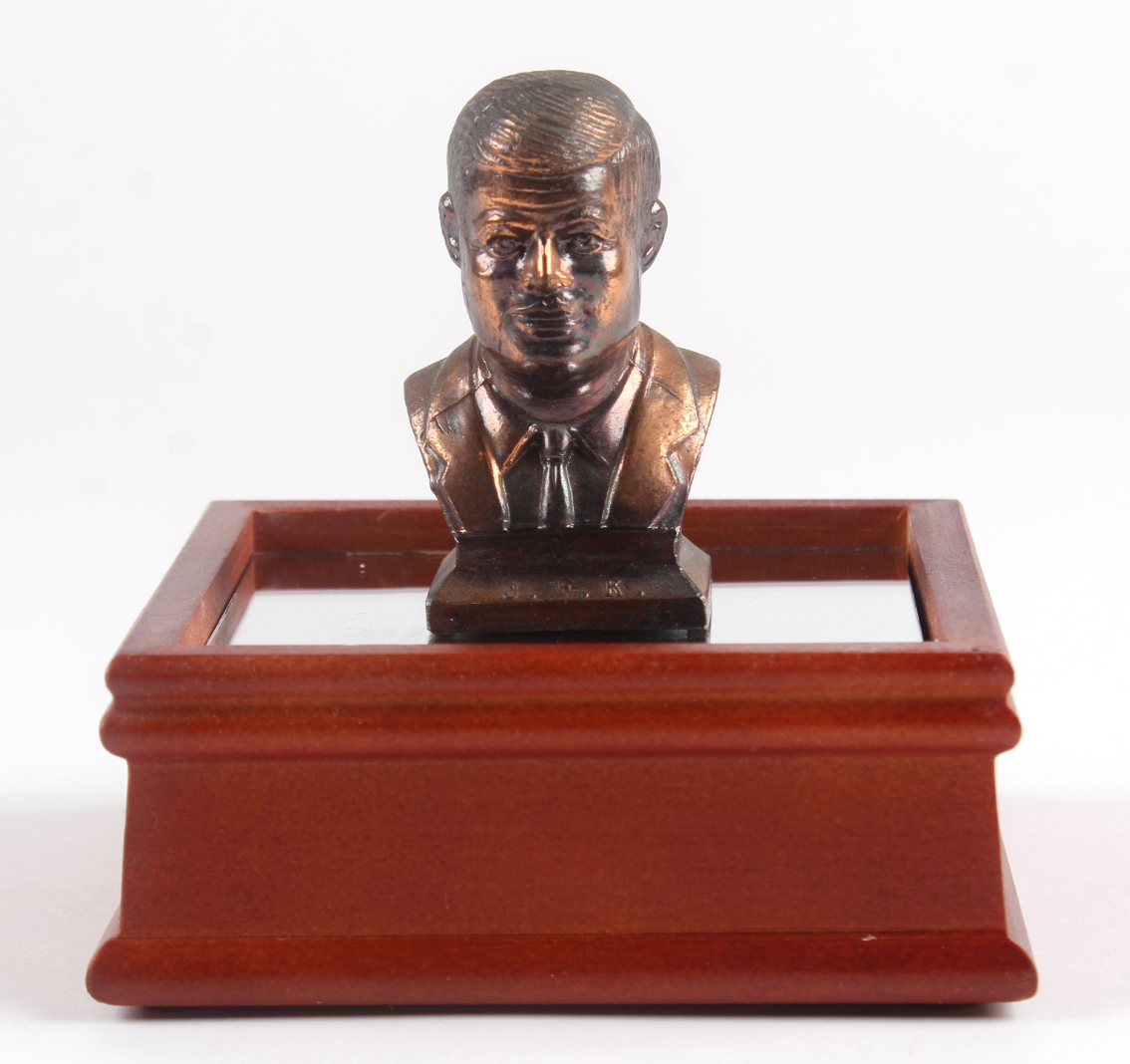John F. Kennedy 1.5x2.5 1960s Vintage Brass Bust with Stand