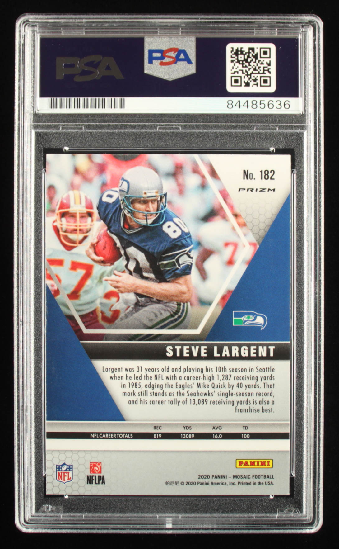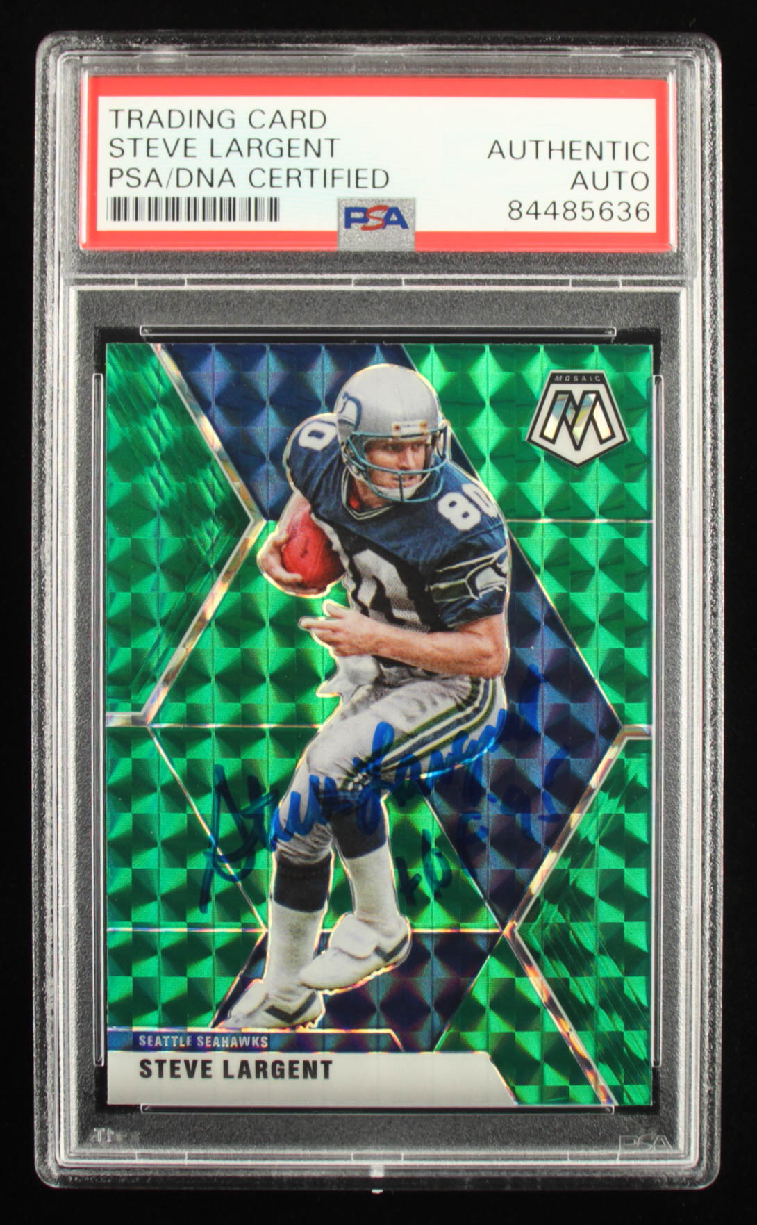 Steve Largent Signed 2020 Panini Mosaic Mosaic Green #182 Inscribed "HOF 95" (PSA)