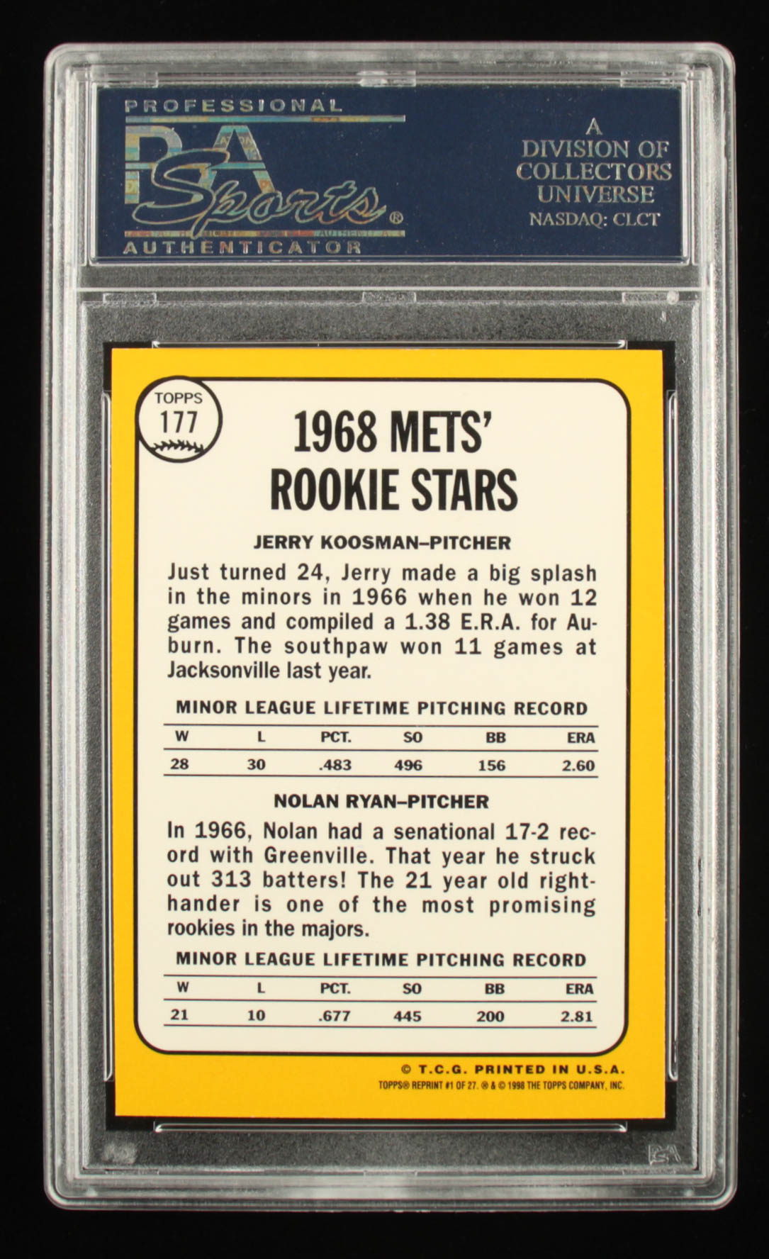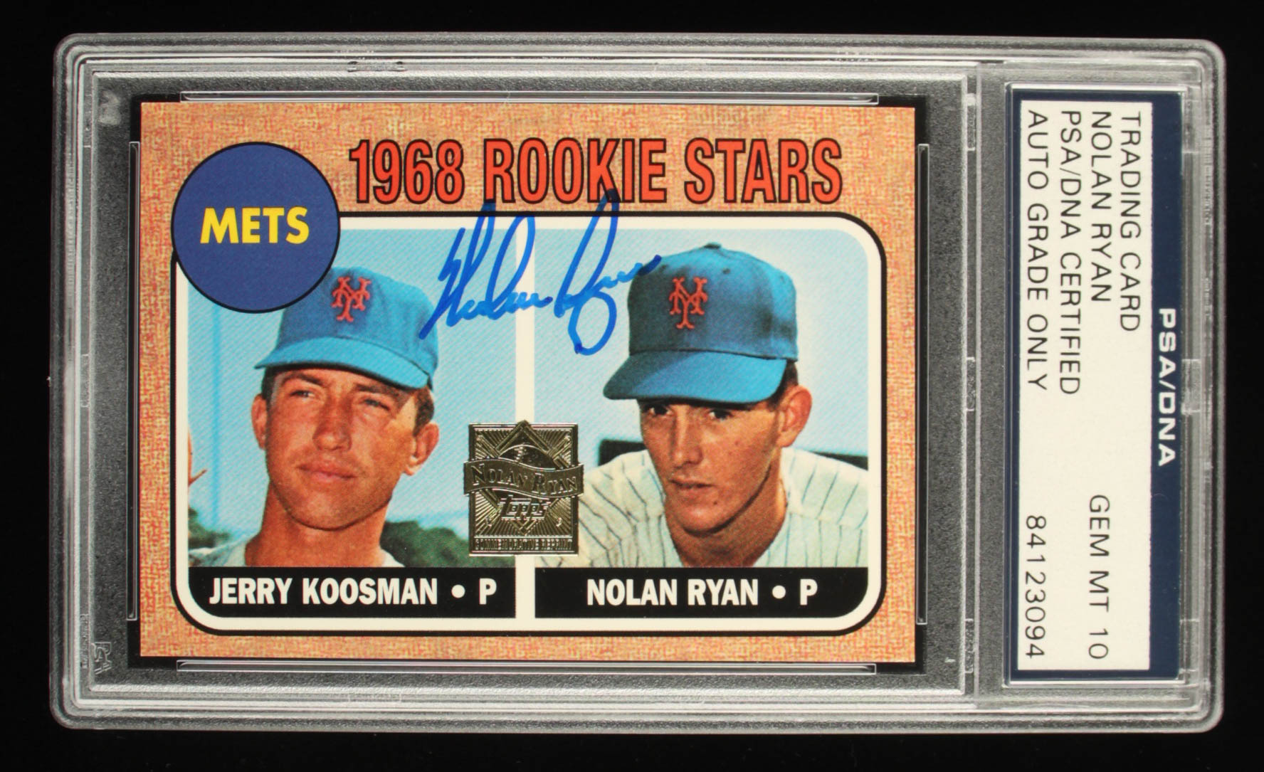 Nolan Ryan Signed 1968 Topps #177 Rookie Stars / Jerry Koosman RC / Nolan Ryan RC Commemorative 1998 Reprint (PSA)
