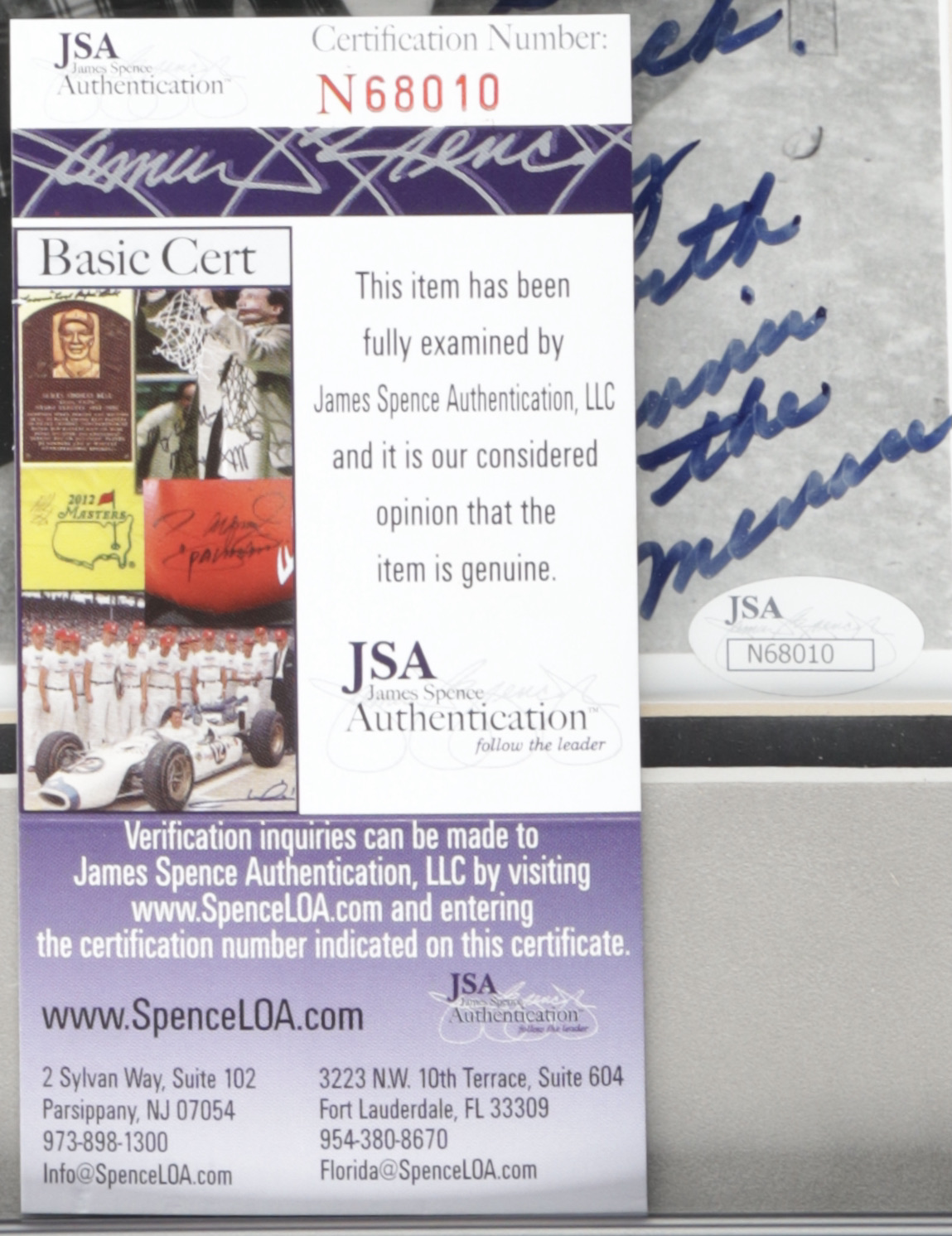 The lot / autograph(s) includes an official James Spence Authentication (JSA) hologram and matching COA for authenticity purposes.