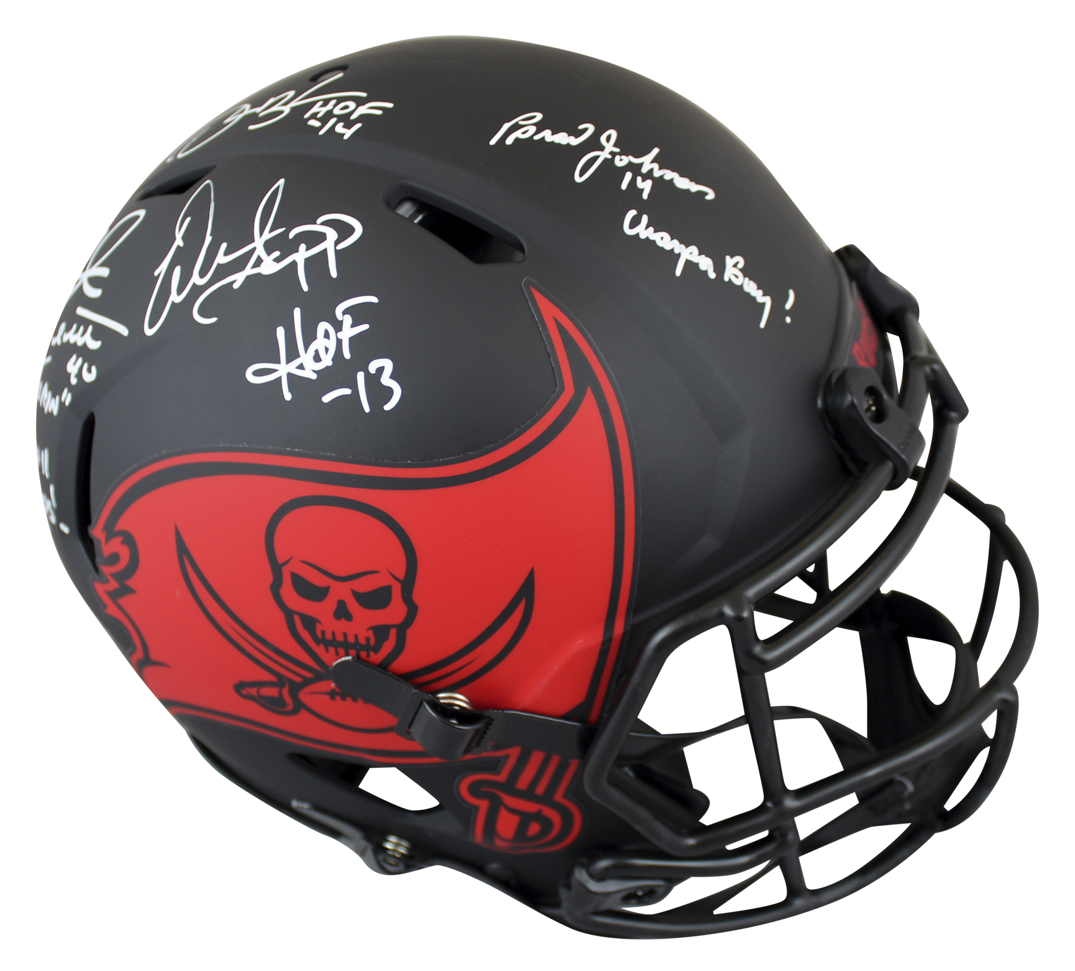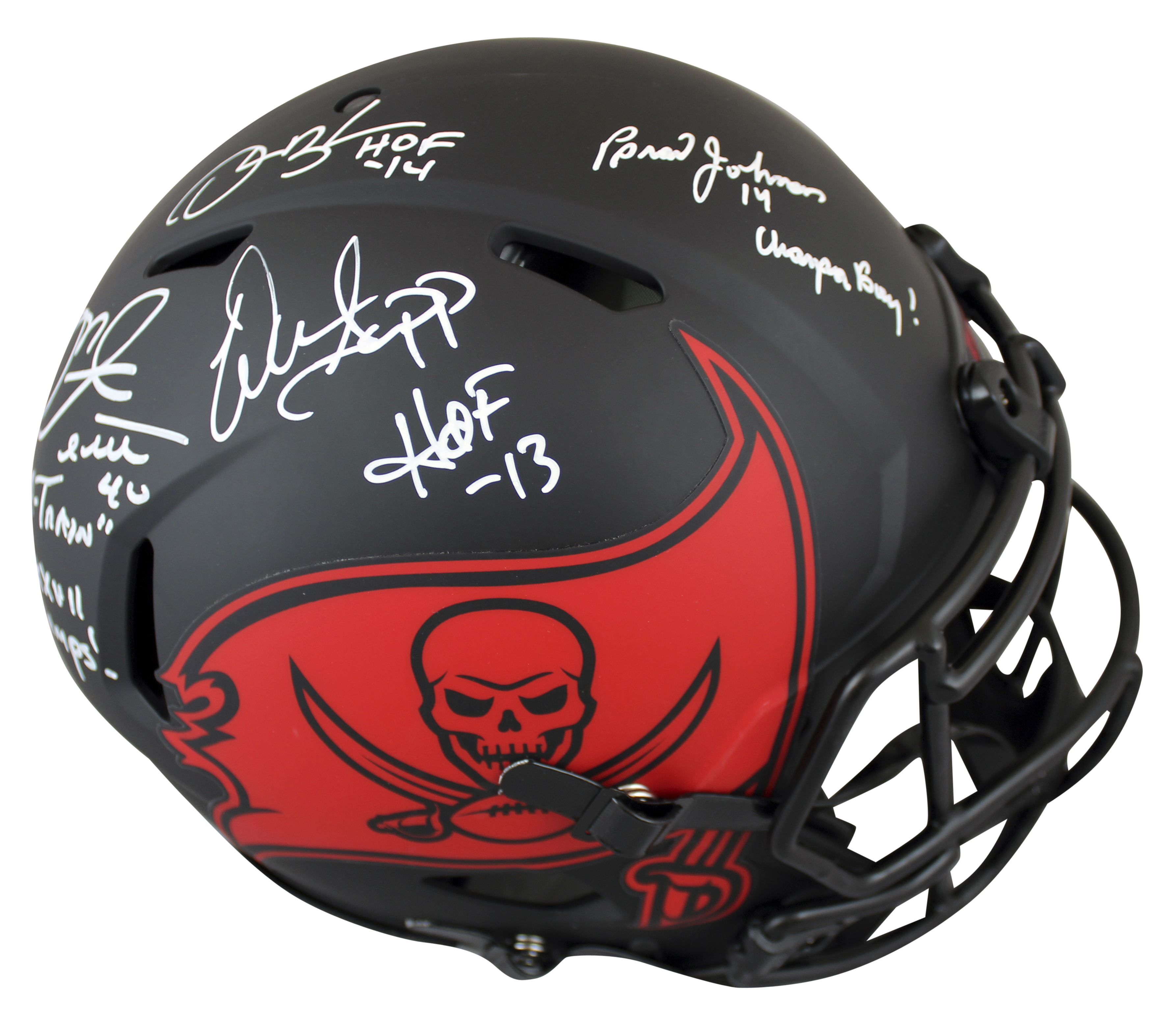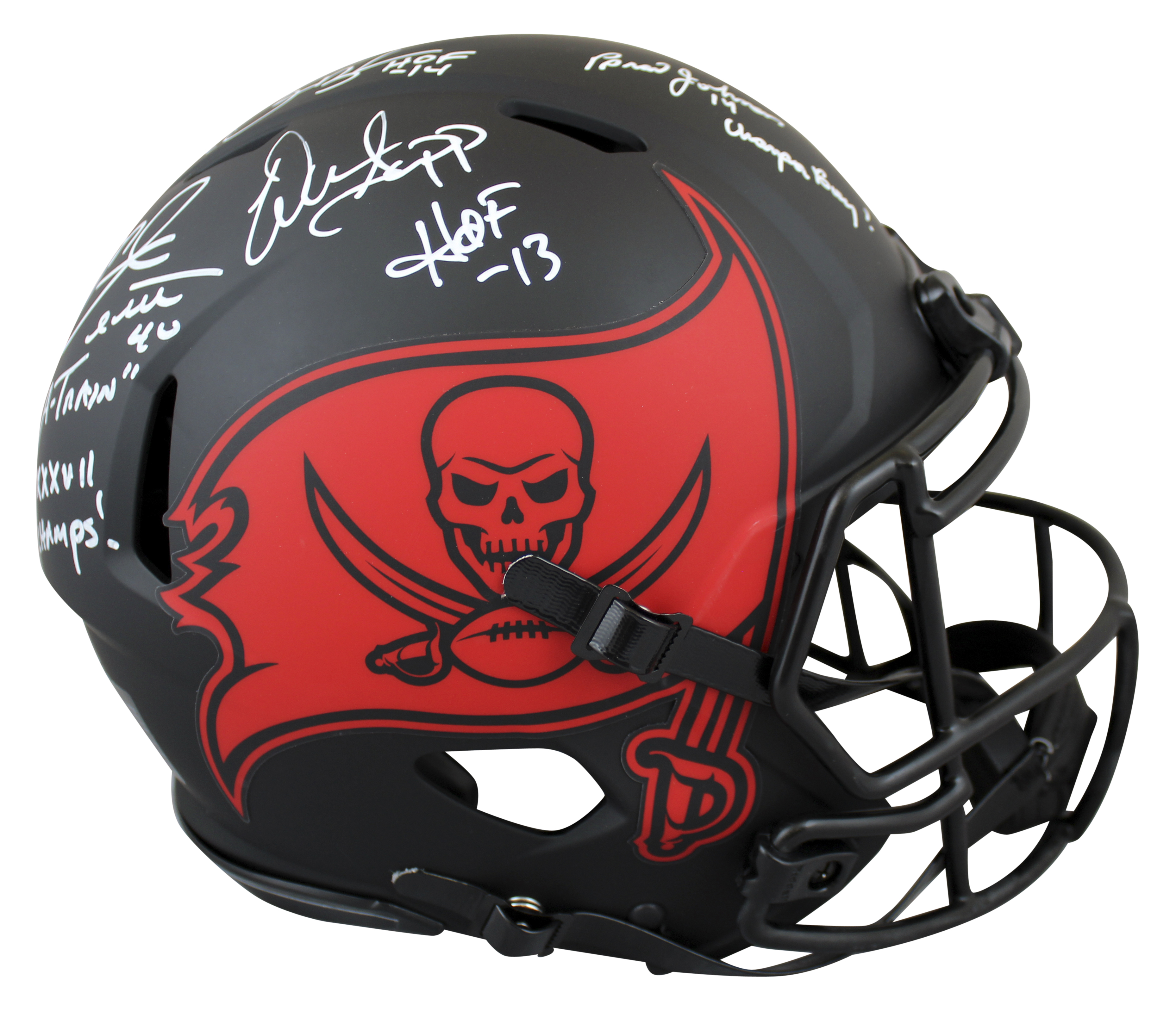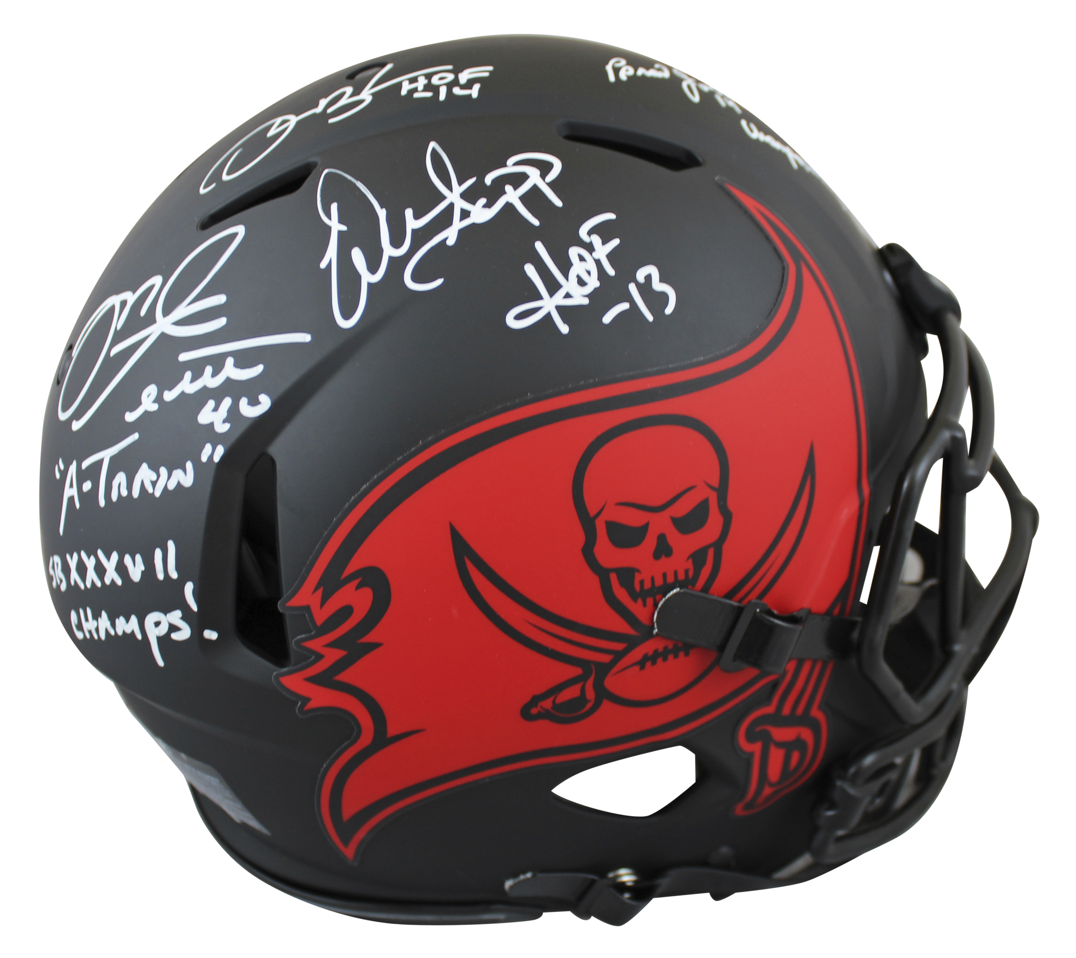 Tampa Bay Buccaneers full-size Authentic On-Field Eclipse Alternate Speed helmet. Team-signed and inscribed by (4) SB XXXVII Players Including Warren Sapp (HOF), Derrick Brooks (HOF), Brad Johnson and Mike Alstott.