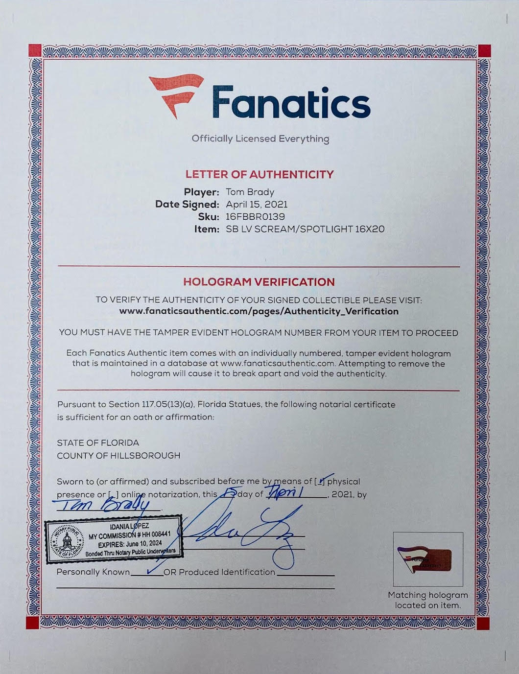 Authentication: Fanatics LOA