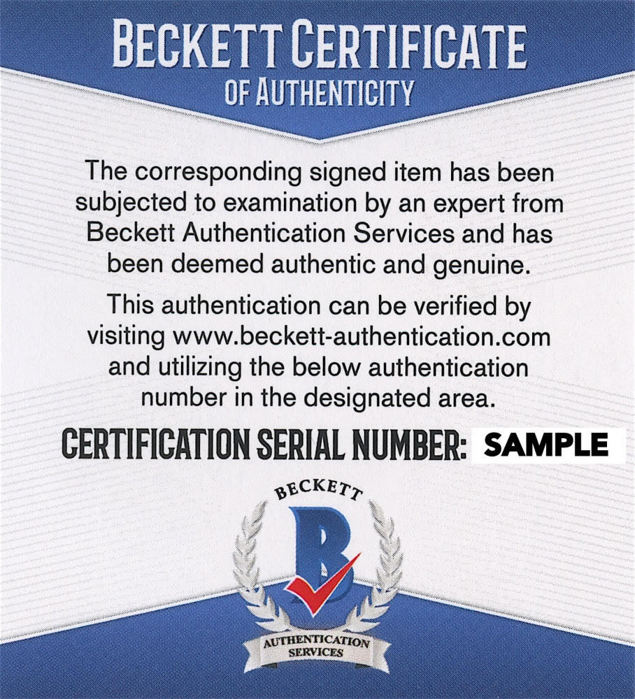 The autograph includes an official Beckett Authentication Services serially-numbered hologram and matching COA for authenticity purposes.