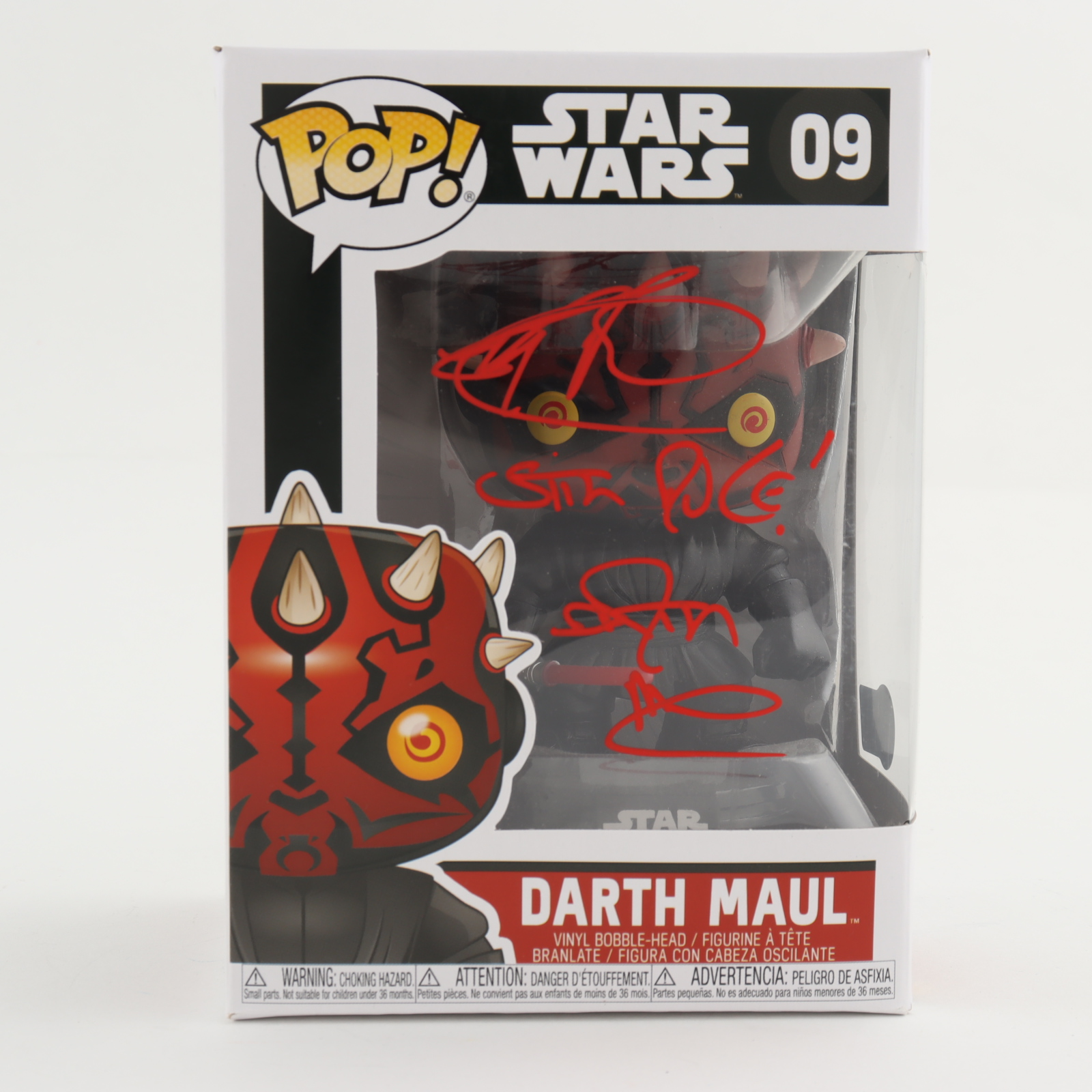 Funko Pop! vinyl figure measures approximately 4" tall and has been hand-signed on the packaging by Ray Park (Darth Maul).
