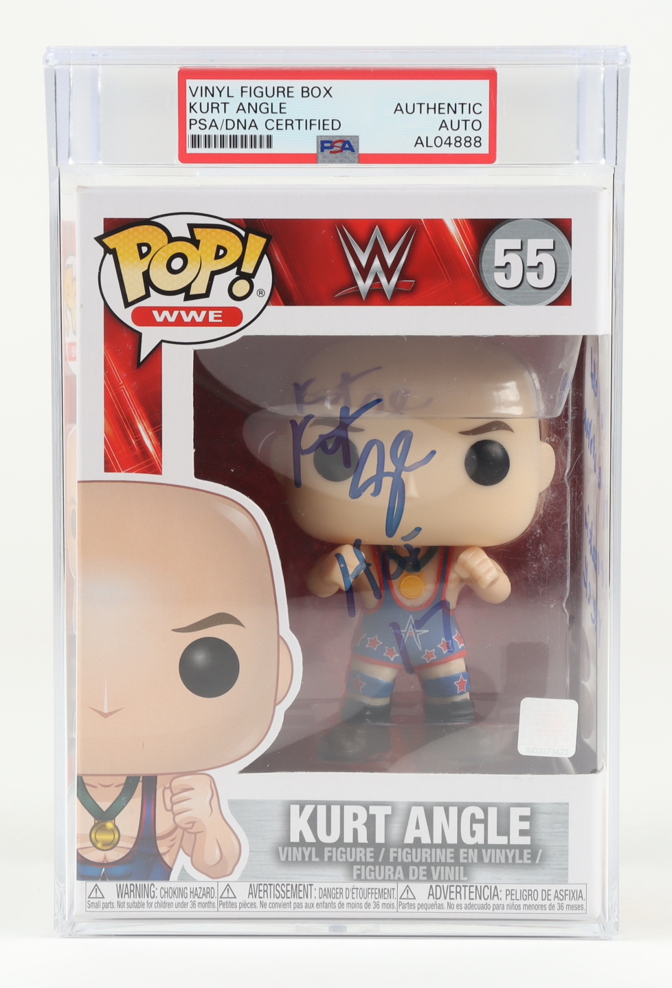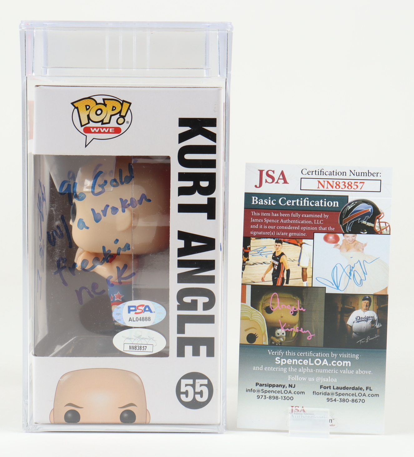 Kurt Angle Signed WWE #55 Funko Pop! Vinyl Figure Inscribed "HOF 17" & "96 Gold W/ a broken freakin neck" (PSA & JSA)
