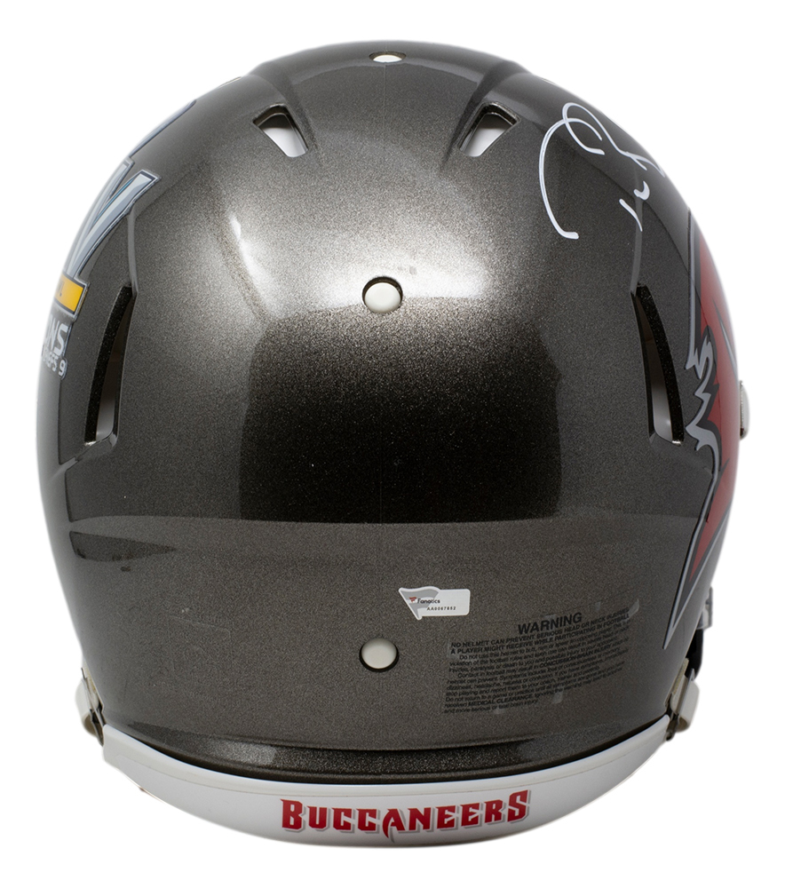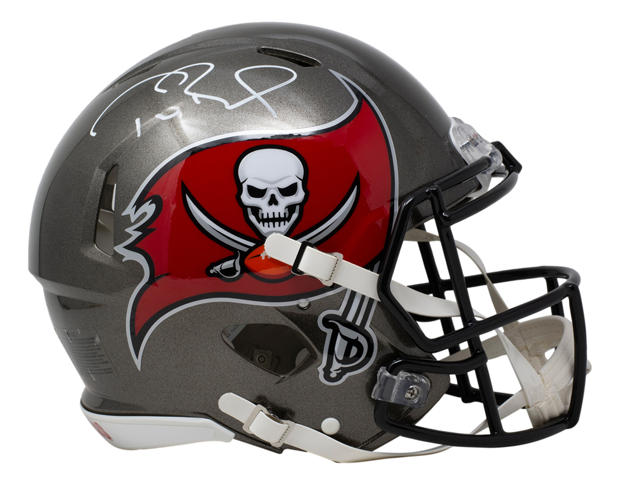 Riddell Tampa Bay Buccaneers full-size authentic on-field speed helmet. Has been hand-signed by Tom Brady.