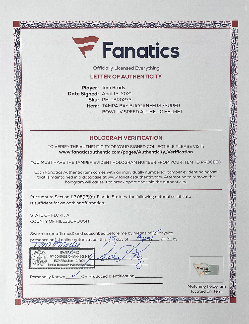 The lot / autograph(s) includes an official Fanatics hologram and Letter for authenticity purposes.