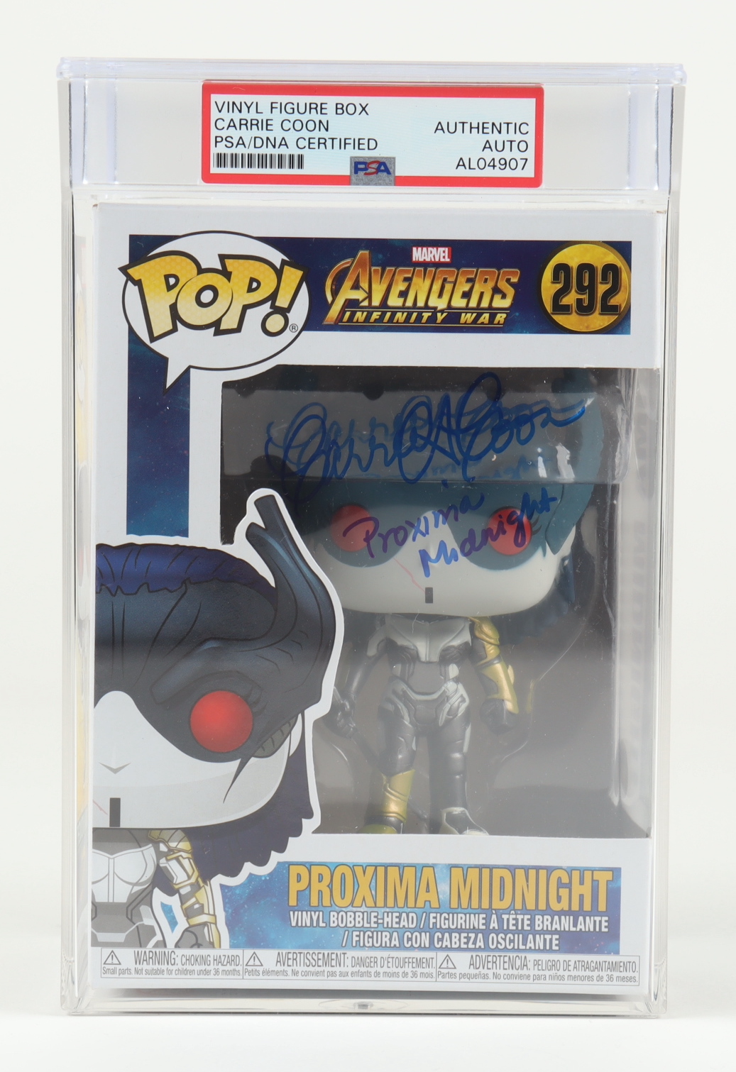 Carrie Coon Signed Avengers Infinity War #292 Proxima Midnight Funko Pop! Vinyl Figure Inscribed "Proxima Midnight" (PSA)