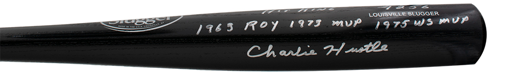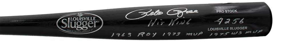 Louisville Slugger baseball bat. Hand-signed and inscribed by Pete Rose (Cincinnati Reds).