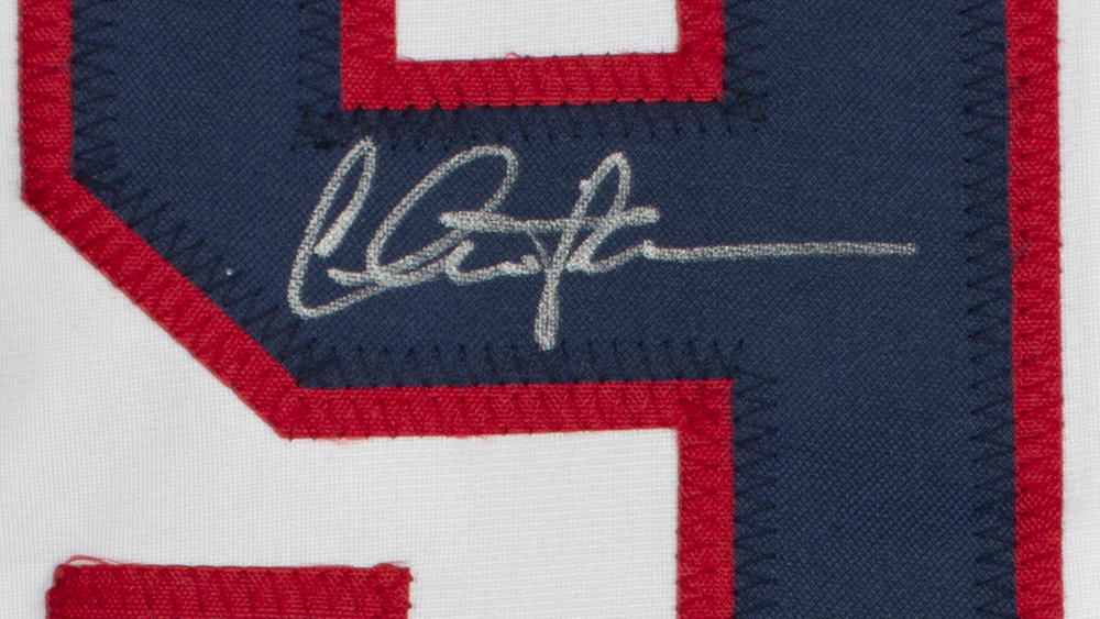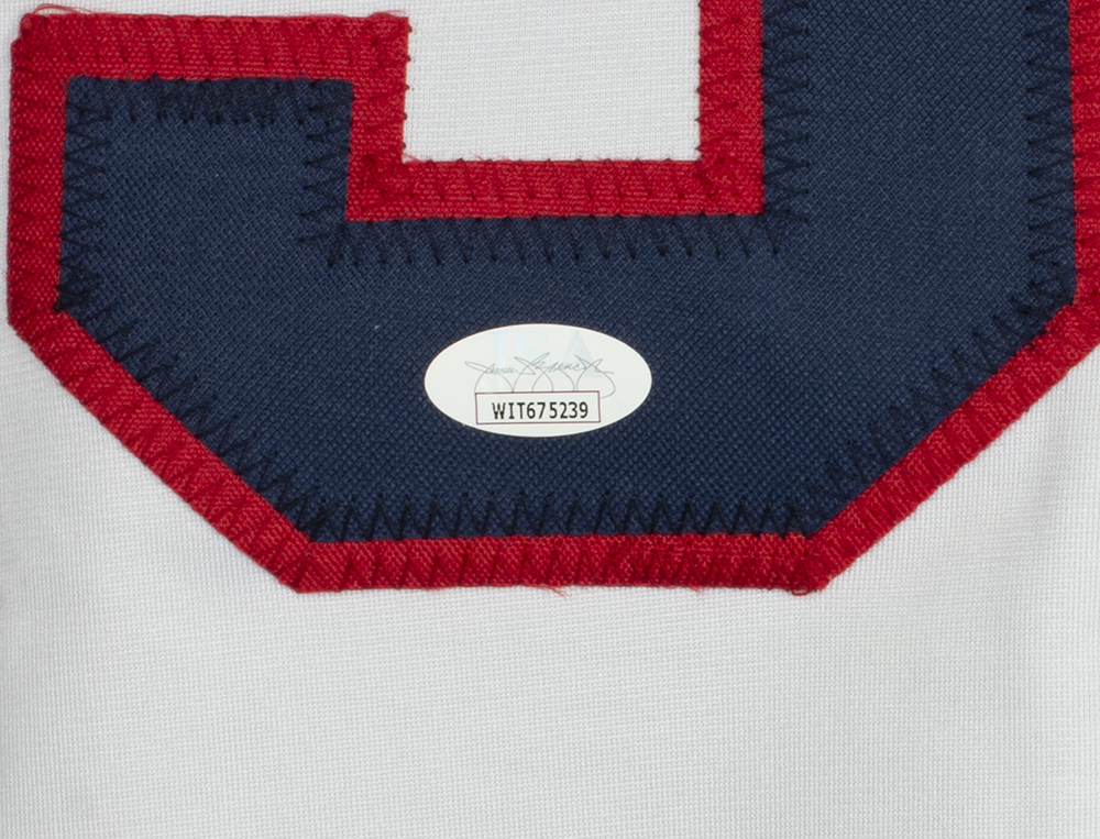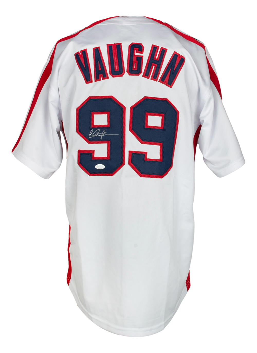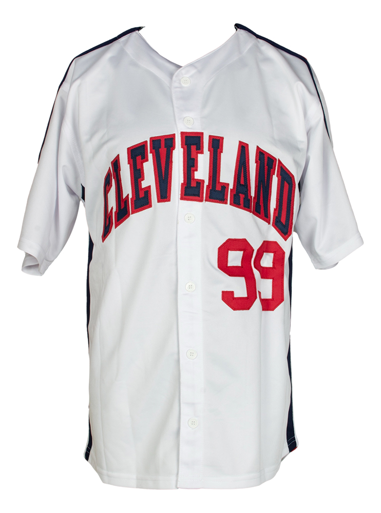 Custom on-field style jersey. Everything is sewn on, size XL. Hand-signed by Charlie Sheen (Ricky "Wild Thing" Vaughn).