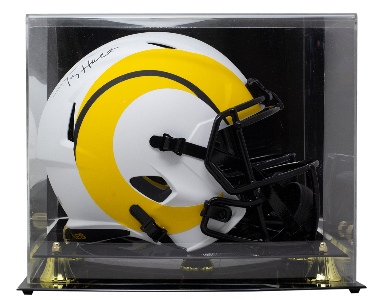 Riddell Los Angeles Rams full-size replica lunar eclipse alternate speed helmet. Hand-signed by Torry Holt. Display case included as shown.