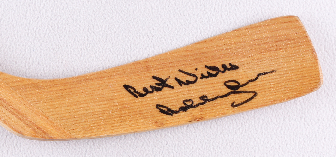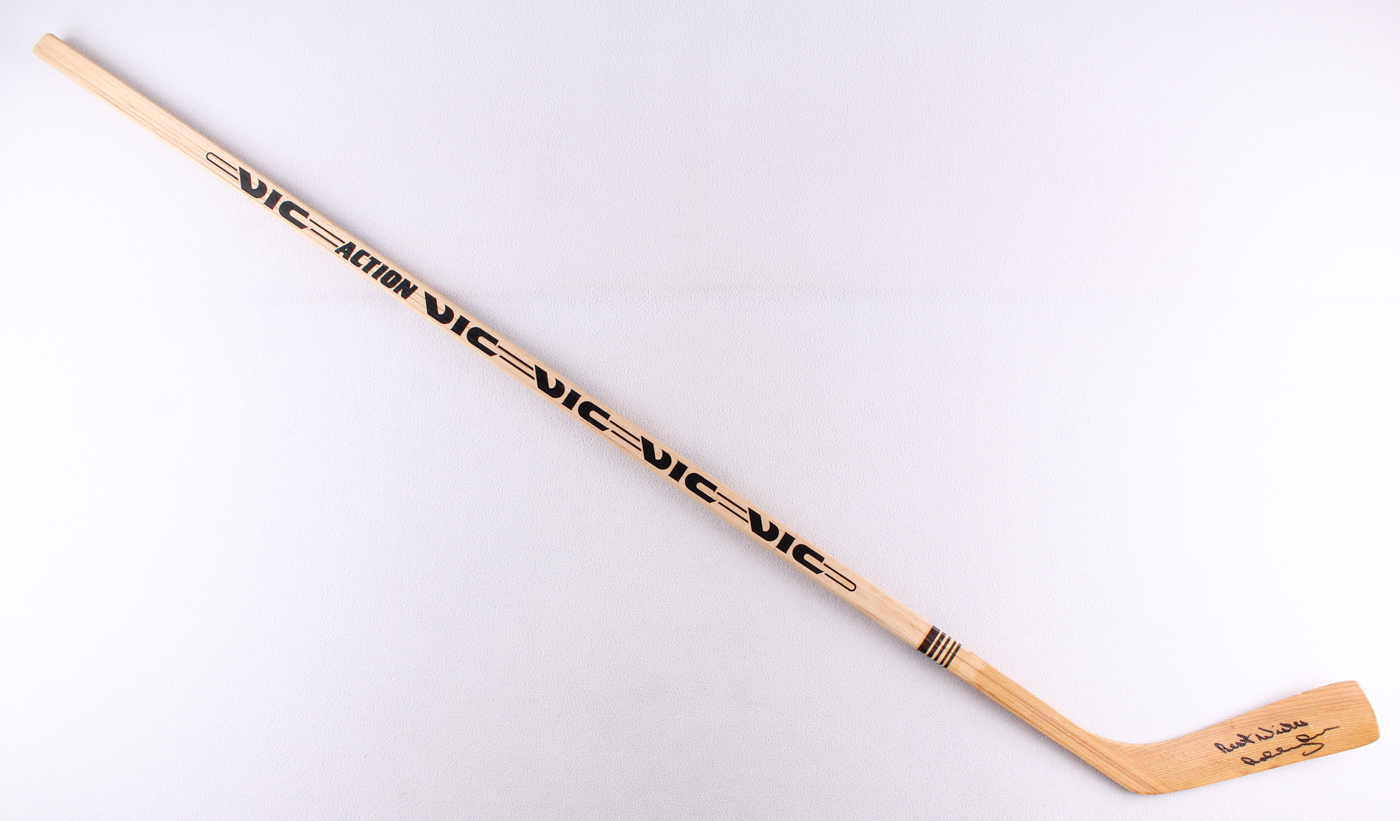 Victoriaville full-size hockey stick. Hand-signed and inscribed in black felt-tip pen by Bobby Orr (Bruins, Blackhawks, HOF).